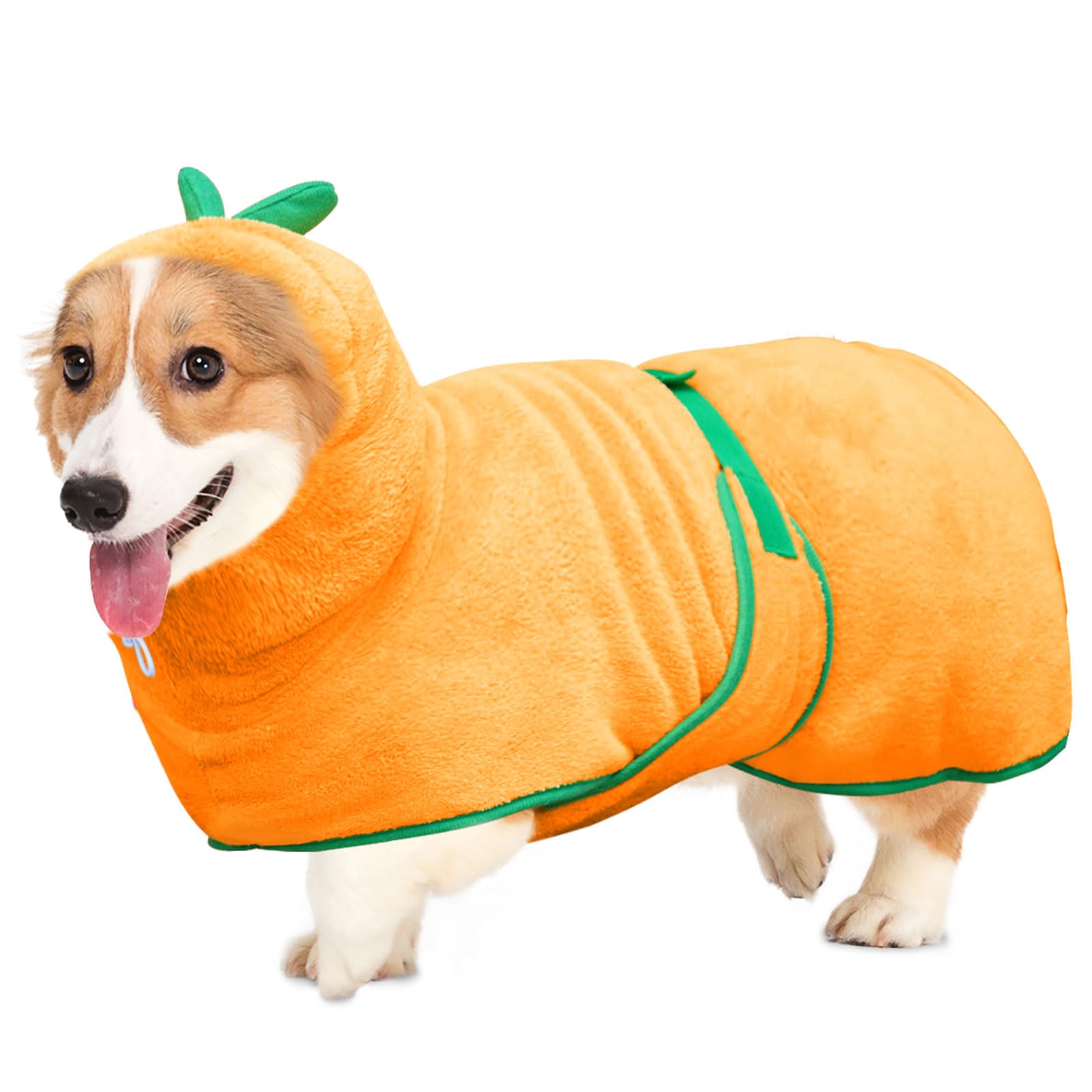Bibykivn Hundebademantel aus Mikrofaser, Kürbis Hund Bademantel Mantel, Verstellbarer Bademantel für Hunde mit Kragen und Taille,Super Saugfähiger, Für Große, mittelgroße und kleine Hunde M Gelb