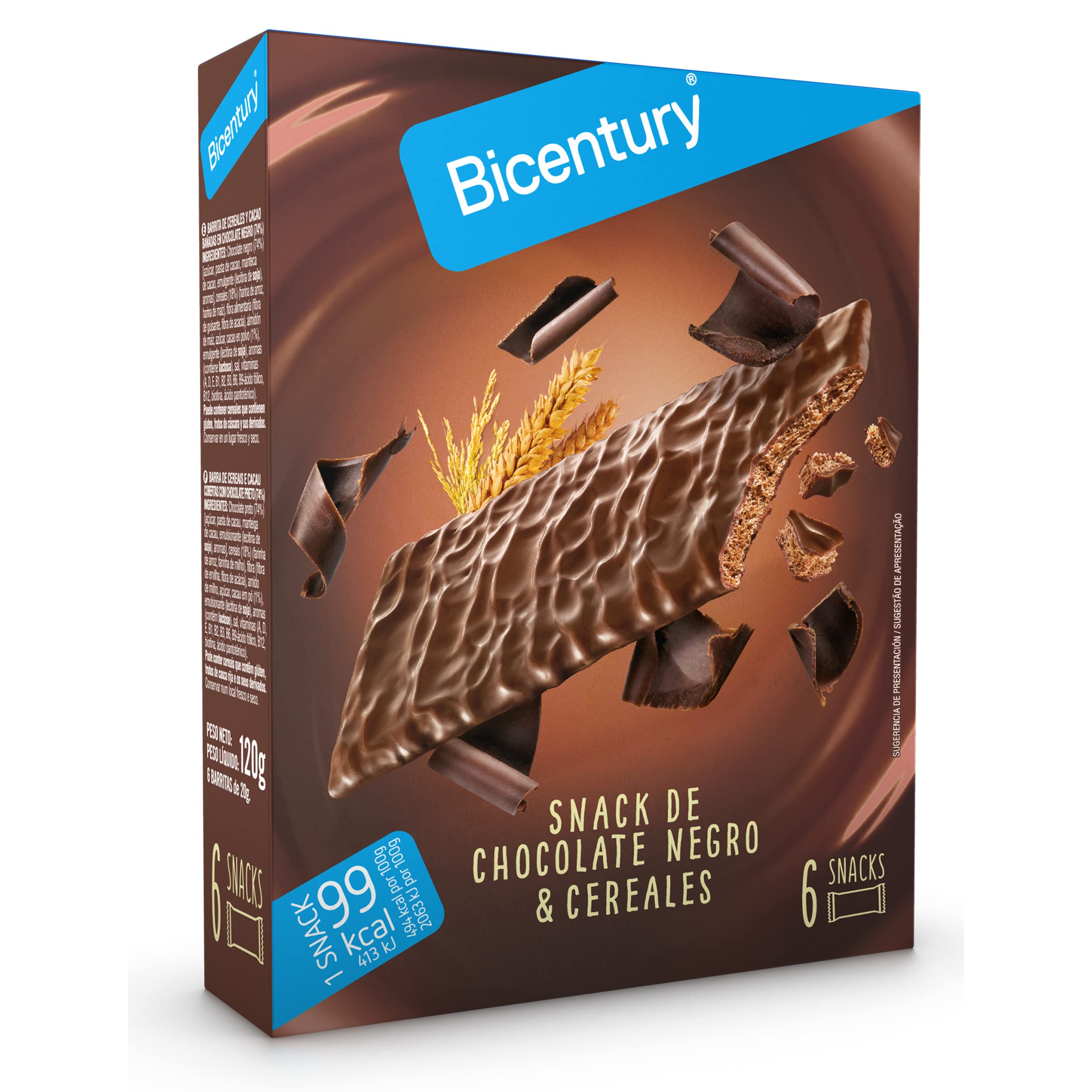BICENTURY Lot de 6 barres de chocolat noir et céréales