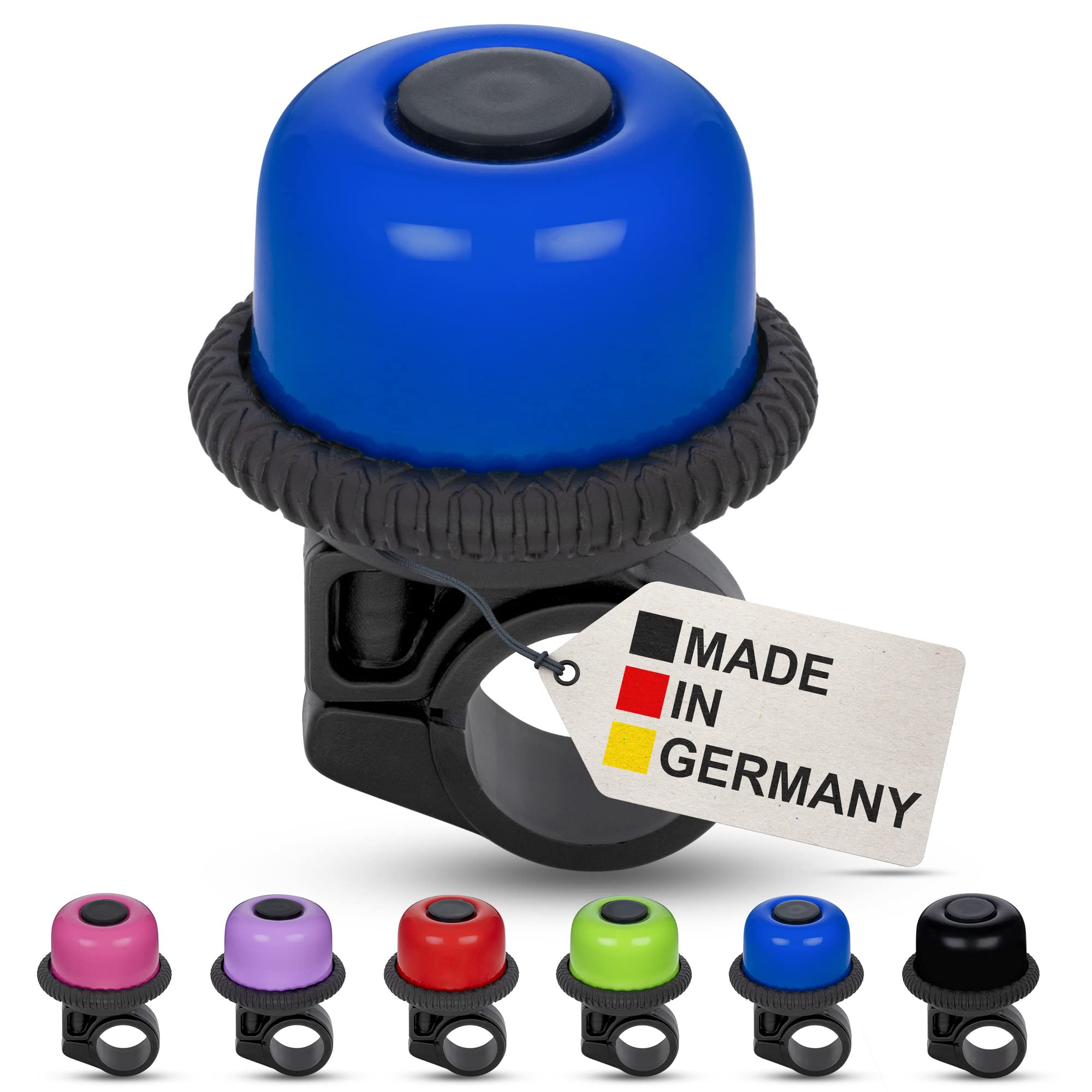 ?? 100% customer service - if you have any questions or need support, please contact us.We take care of ourselves reliably and quickly!?? Made in Germany-our bicycle bells are made in Germany from first-class aluminum and powder-coated and assembled in valuable handicraft in disabled workshops.?? Comfortable assembly - the assembly is easy with a cross screwdriver.The bicycle bell can be reliably installed on the left or right on the handlebar.Please just put on the screw.?? Perfectly suitable-the bell fits on all standard handlebars with a diameter of 22 mm and due to the included reducer socket, even with very thin handlebar up to 18 mm in diameter.No matter whether children's bike, impeller or scooter.?? noticeably more security-the mini rotary ring in blue is robust, small, loud and makes a bright and clearly audible ping tone.Due to the particularly smooth-running turning operation, it is also perfect for smaller children.