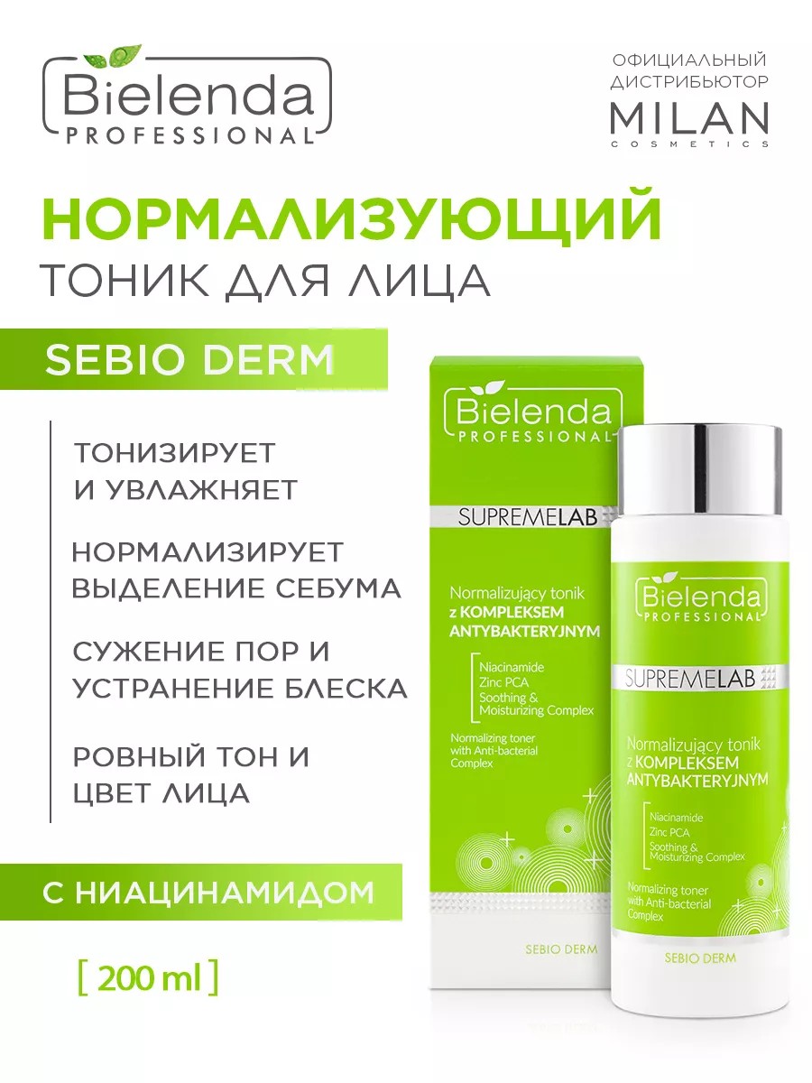 Увлажняющий тоник для лица с ниацинамидом от польского бренда Bielenda Professional обеспечивает домашний пост профессиональный уход. Нормализующий тоник для лица тонизирует и освежает кожу, а также восстанавливает физиологический рН, подготавливая к дальнейшему нанесению сыворотки или крема. Нормализует и регулирует выделение кожного сала, чтобы помочь в борьбе с несовершенствами эпидермиса. Подходит для ежедневного использования. Оказывает успокаивающее, увлажняющее и антибактериальное действие.