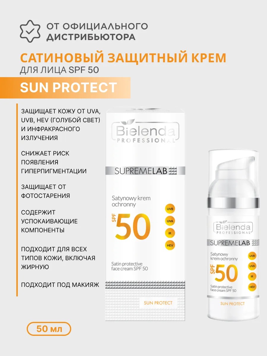 | Комплектация | Сатиновый защитный крем для лица SPF 50 - 1 шт. |