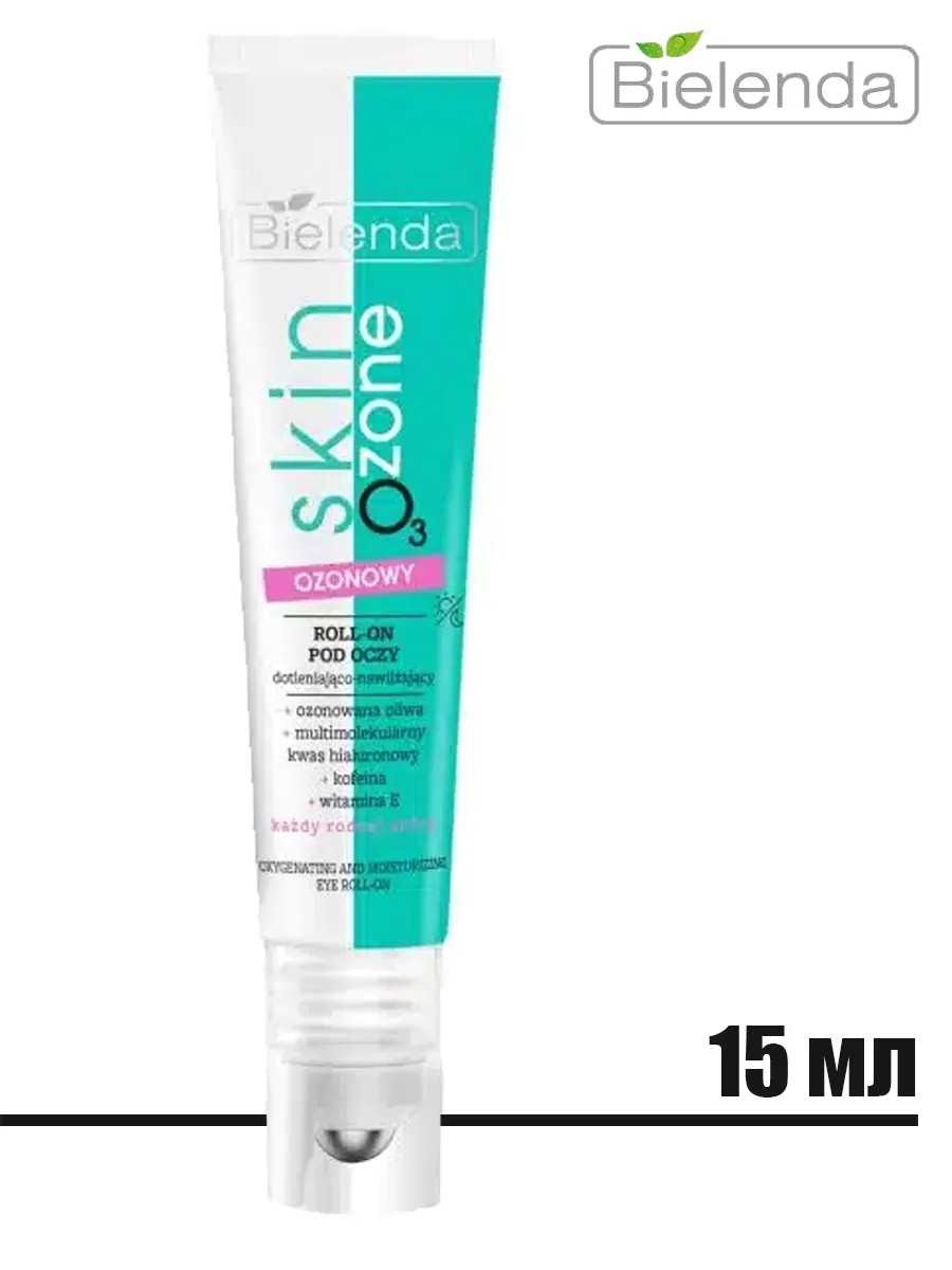 SKIN O3 ZONE Ozone Roll-on Hydro-Cream for Eyes, 15ml - 1 pc. SKIN O3 ZONE Ozone roll-on gel hydro-cream for the skin around the eyes, oxygenating and moisturizing. Shake before use. Apply every morning and evening, massaging the skin around the eyes with the cooling massage applicator. Ozon roll-on Eye from the Bielenda SKIN O3 ZONE line provides refreshment and reduces signs of fatigue thanks to the applicator with a cooling effect. It contains ozonized oil that revitalizes the skin, three forms of hyaluronic acid for deep hydration, caffeine to reduce dark circles, and vitamin E, which smoothes and improves skin elasticity. The roller is designed for all skin types. The lightweight formula hydrates, soothes, brightens, smoothes fine wrinkles and reduces dark circles, providing a rested, fresh look. The cooling roller applicator allows you to massage the eye area, providing instant soothing relief and reducing signs of fatigue.