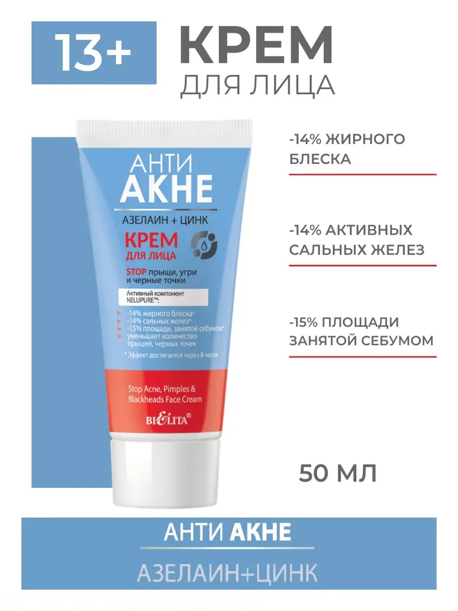Крем для лица Анти Акне Stop прыщи, угри и черные точки. азелин и цинк. Матирующий крем от прыщей эффективно справляется с надоедливыми угрями и упрямыми черными точками. Этот крем от прыщей на лице подходит для жирной кожи, снимает воспаление и предотвращает их появление в будущем. Формула успешно справляется со следами постакне, обеспечивая более ровный тон кожи. При однократном применении через 8 часов наблюдается значительное уменьшение жирного блеска и активности сальных желез, что делает его идеальным решением для подростков, испытывающих проблемы с акне. Крем обладает легкой, нежирной текстурой, что обеспечивает комфортное нанесение и быстрое впитывание. Данный продукт станет надежным помощником в борьбе с несовершенствами кожи. Он подходит как для ежедневного использования, так и для интенсивного ухода при возникновении проблемных зон. Надежно борется с акне и помогает вернуть коже здоровый вид. Подарите своей коже заботу и внимание благодаря этому эффективному средству!