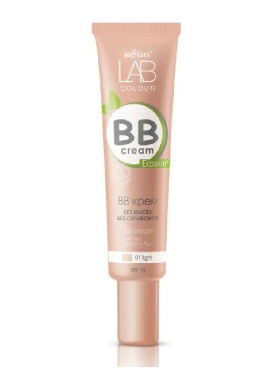 Bielita LAB color BB cream, oil- and silicone-free, shade 01 light, 30 ml tube. This new oil- and silicone-free BB cream is a paraben-free, oil- and silicone-free tinted cream. It conceals redness and small age spots, visually reduces enlarged pores, and conceals minor breakouts. The ECOskin pre- and probiotic complex stimulates the development of beneficial microflora on the face. Green pigments evenly even out skin tone and texture. SPF 15 protects the skin from the harmful effects of the sun and prevents premature aging.