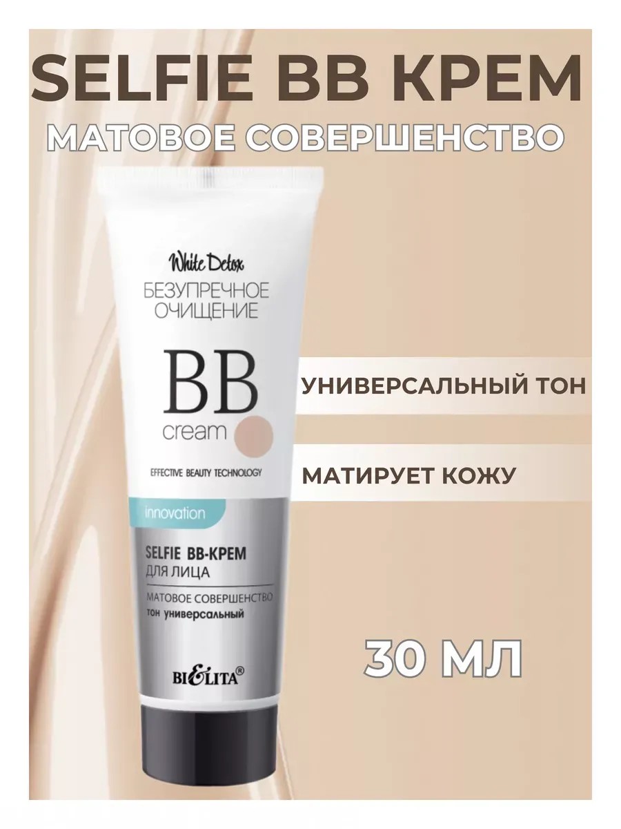 BB-крем матирующий White Detox Белита. ББ крем обеспечивает коже безупречно ровный тон. Благодаря уникальной формуле, биби крем эффективно подстраивается под естественный тон лица. Содержит специальный комплекс активных компонентов, которые устраняют жирный блеск, уменьшают поры, маскируют несовершенства кожи. Тоналка делает кожу матовой и светящейся, без жирного блеска. Благодаря легкой текстуре, легко распределяется по коже, не оставляя ощущения тяжести или липкости. Тональник подходит для жирной кожи, комбинированной кожи. Применение: нанесите bb крем тональный на чистую кожу лица, шеи, декольте, равномерно распределите. Белорусская косметика BIELITA выбор многих покупателей, попробуй и ты!