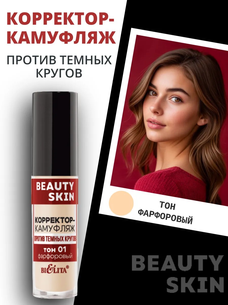 Представляем вам Консилер для глаз против темных кругов Beauty Skin тон 01 от BIELITA — ваш верный помощник в борьбе за безупречный тон лица! Этот плотный и стойкий консилер станет настоящим камуфляжем для кожи, скрывая темные круги, покраснения и другие несовершенства. Легкая жидкая текстура скользит по коже, не забивая поры и не подчеркивая морщинки. Благодаря обогащенной формуле с витамином Е и кокосовым маслом, консилер не только маскирует недостатки, но и ухаживает за нежной кожей вокруг глаз. Beauty Skin тон 01 подходит для всех типов кожи, в том числе для комбинированной и нормальной. Он станет незаменимым средством для создания безупречного макияжа, который продержится весь день. С Beauty Skin тон 01 вы можете быть уверены в том, что ваш взгляд будет свежим и сияющим, а кожа — ровной и красивой. Забудьте о темных кругах и несовершенствах — с этим консилером вы будете выглядеть просто потрясающе!