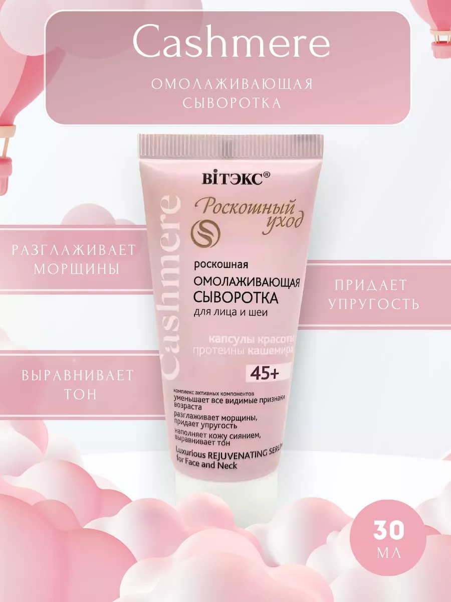 | Полное наименование товара | Cashmere Роскошная омолаживающая сыворотка для лица и шеи, 30мл., туба |