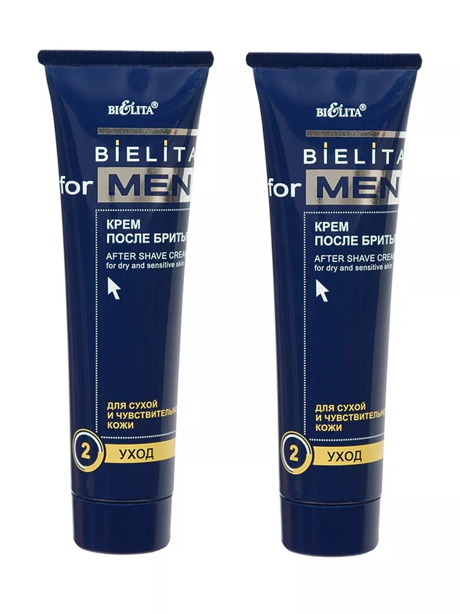 Комплект 2 штуки. Bielita Крем после бритья For Men для сухой и чувствительной кожи, 100 мл. Витаминизированный крем обеспечивает тройное воздействие: во-первых, оказывает противовоспалительное действие (алоэ Вера, бисаболол); во-вторых, обеспечивает питание и увлажнение (натуральное масло лесного ореха и витамин Е), в-третьих, снимает раздражение (аллантоин). Превосходный крем для ухода за сухой и чувствительной кожей. Крем мгновенно впитывается, идеально защищая сухую чувствительную кожу от раздражения, увлажняет и освежает. Мужской крем после бритья насыщен натуральными компонентами. Предназначен для эффективного ухода за кожей после бритья.