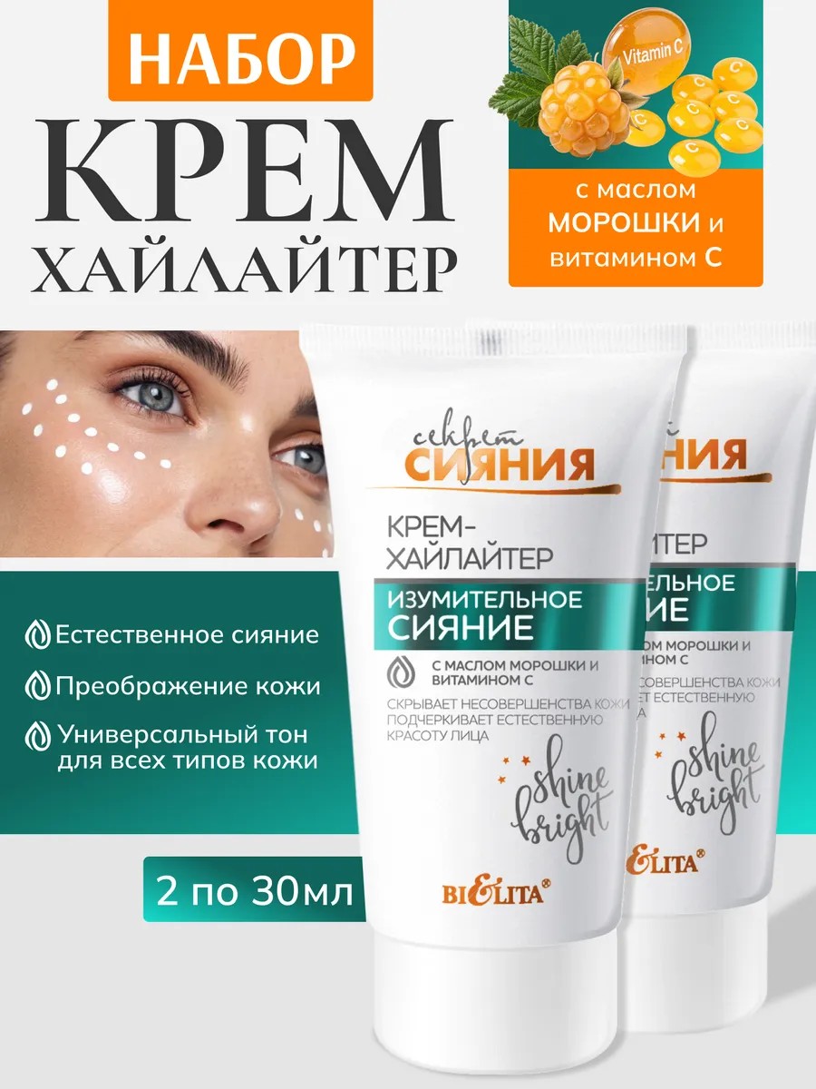 Крем хайлайтер для лица и декольте от Belita Изумительное сияние. Секрет сияния — это отличный выбор для достижения идеального макияжа и придания коже свежего, естественного блеска. Этот продукт создан для тех, кто хочет улучшить свой внешний вид, подчеркивая контуры лица и добавляя особое свечение, мгновенно преображают вашу кожу, скрывают следы усталости.