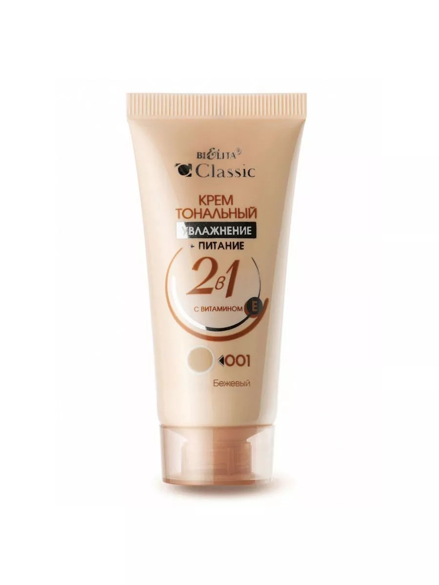 КомплектацияКрем тональный Увлажнение+питание 2в1 с витамином Е CLASSIC ТОН 001 30 мл - 1 шт