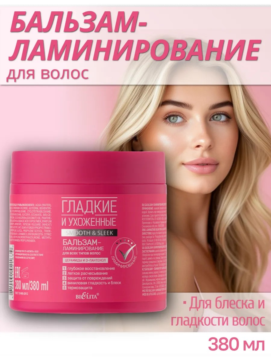 Бальзам для волос с эффектом ламинирования - это уникальное средство для восстановления поврежденной структуры локонов. Он окутывает каждую прядь невесомой защитной пленкой, обладает антистатическим эффектом. Благодаря этому средству ваши волосы надежно защищены от электризации, пушистости и спутывания даже в сложных погодных условиях. Волосы после применения увлажняющего бальзама выглядят ухоженными, гладкими и невероятно блестящими. Церамиды восстанавливают поврежденные участки волоса, заполняют микротрещины и «запечатывают» секущиеся кончики. Д-пантенол утолщает волосы, предотвращает их ломкость, обеспечивает длительное увлажнение. Масло кокоса интенсивно питает волосы от корней до самых кончиков. Бальзам против спутывания волос подходит для ежедневного применения.
