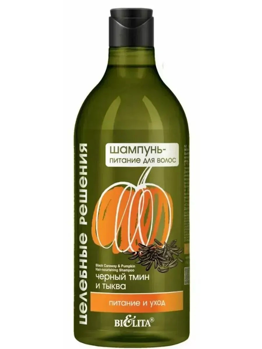 Bielita Nourishing Shampoo with Healing Hair Solutions, Black Cumin and Pumpkin, 750 ml. Enriched with the powerful beneficial properties of black cumin and pumpkin extracts, this shampoo thoroughly cleanses and nourishes hair. Black cumin extract is rich in essential fatty acids. It helps strengthen hair from the inside out, making it healthier, thicker, and more elastic, and prevents premature graying. Pumpkin seed extract is rich in beneficial vitamins and microelements that restore and protect hair, giving it natural shine and a soft, smooth texture. Ingredients: Aqua (Water), Sodium Laureth Sulfate, Cocamidopropyl Betaine, Coco-Betaine, Sodium Chloride, Cocamide DEA, PEG-7 Glyceryl Cocoate, Amodimethicone, C11-15 Pareth-7, Laureth-9, Glycerin, Trideceth-12, Parfum (Fragrance), Polyquaternium-10, Disodium EDTA, Glycerin, Cucurbita Pepo Seed Extract, Carum Carvi Seed Extract, Benzyl Alcohol, Methylchloroisothiazolinone, Methylisothiazolinone, Citric Acid, Limonene