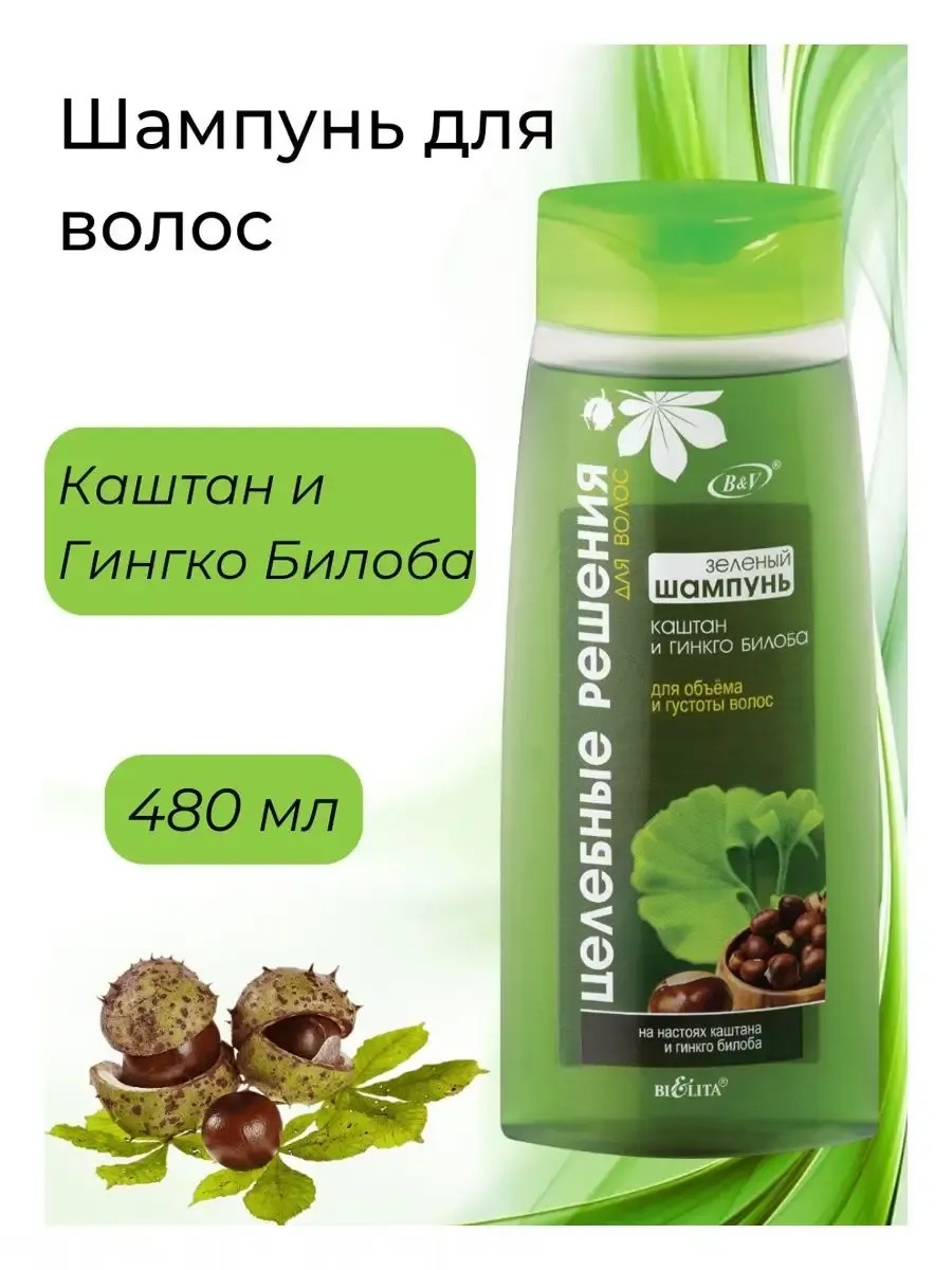 Шампунь для волос Целебные решения - это находка для придания объёма и густоты вашим волосам белорусской косметики BIELITA. Каштан и гинкго билоба великолепно ухаживает за тонкими и слабыми волосами. Шампунь для роста волос основан на растительных настойках каштана и гинкго билоба, формула которых ухаживает за волосами, делая их более объёмными и сильными. Каштан стимулирует рост волос и способствует созданию желаемого объема. Гинкго билоба обладает восстанавливающим и питательным действием: укрепляет волосы, питает кожу головы и стимулирует основные жизненные функции. Благодаря растительным настойкам и активным компонентам в составе шампунь для волос женский возвращает волосам здоровье и красоту. Забудьте о проблемах с выпадением и слабостью волос. Приобретайте и наслаждайтесь ухоженностью и природной красотой каждый день.