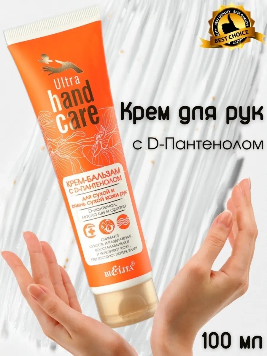 Белита-Bielita Крем для рук. Твоя кожа рук склонной к раздражениям и появлению микротрещин? Постоянно не хватает влаги и питательных веществ? Мы нашли решение! Наш крем-бальзам **для рук с D-пантенолом** настоящее спасение для сухой и очень сухой кожи рук. Крем имеет 3 важных компонента для увлажнения, защивления и восстановления кожи. Первый компонент - D-пантенол, он интенсивно увлажняет и смягчает кожу, обладает восстанавливающим и успокаивающим действием. Вторые компоненты - масла ши и арганы, которые питают и успокаивают кожу, а также способствуют ее заживлению и регенерации, уменьшают проявления воспалений и раздражений. И третий компонент - Ланолин, который способствует восстановлению липидного слоя сухой и потрескавшейся кожи рук, улучшая её эластичность и увлажненность.