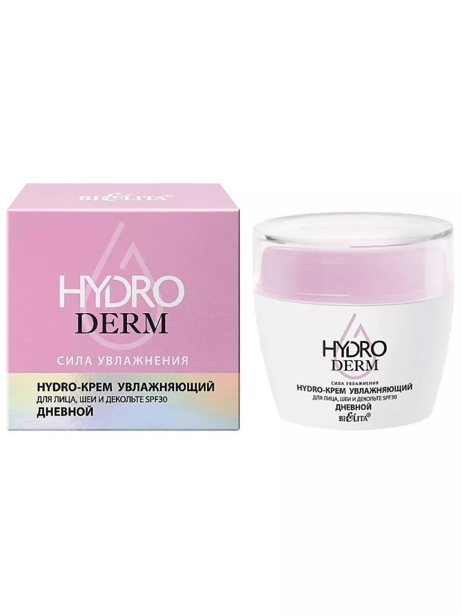 Hydro-крем увлажняющий для лица, шеи и декольте SPF30 дневной HydroDERM 50 мл. Защита, питание и сияние! Hydro-крем увлажняющий для лица, шеи и декольте станет вашим помощником в ежедневной борьбе с негативными факторами окружающей среды. SPF30 в составе крема обеспечивает защиту кожи от вредного воздействия солнца, снижая риск преждевременного старения из-за солнечных повреждений. Активные компоненты (высокомолекулярная гиалуроновая кислота, Redumatte PSO, AQUAXYL) проявляют высокие увлажняющие свойства, восстанавливают защитный барьер кожи, способствуют обновлению кожи, повышают эластичность и упругость. Применение: нанесите крем по массажным линиям на чистую кожу лица, шеи и декольте.