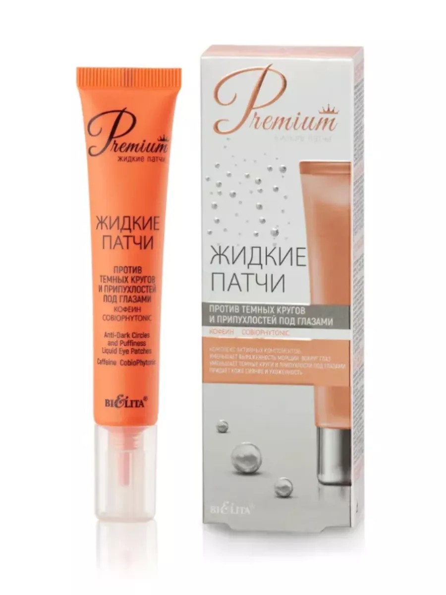 "Liquid" patches "Against dark circles and puffiness under the eyes". Liquid patches under the eyes of the Premium Liquid Patches line will quickly tidy up the skin, hiding traces of a sleepless night and fatigue, while providing effective long-term care.
