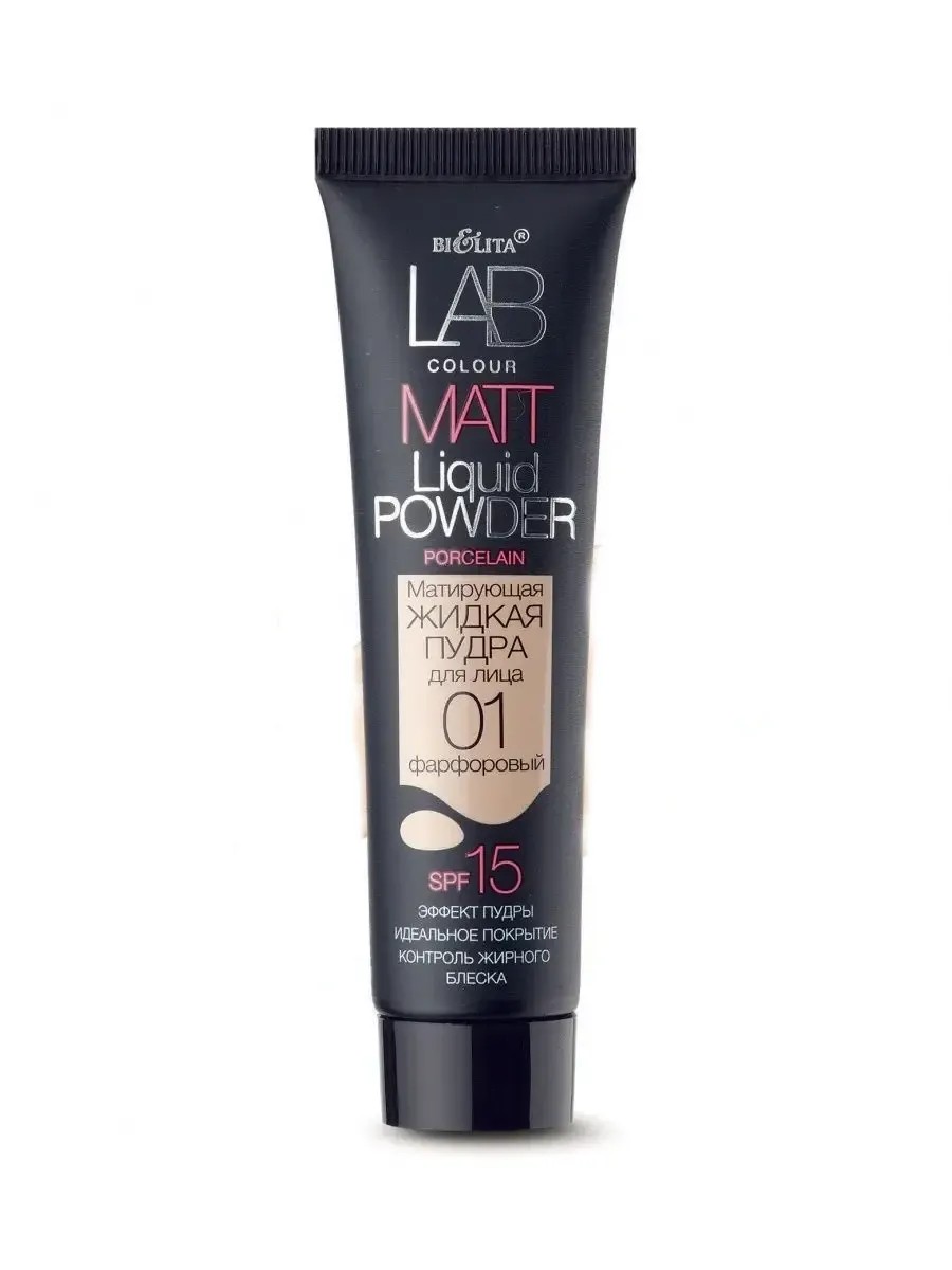 Bielita Mattifying Liquid Face Powder, Shade 01 Porcelain, 30 ml. Directions: Apply liquid powder to clean skin and distribute evenly. This mineral-based liquid powder conceals imperfections and evens out skin tone. Its soft, velvety texture evenly coats the face with a delicate veil, eliminating shine. It creates a weightless, matte finish that's undetectable on the skin, allowing it to breathe and not clogging pores.