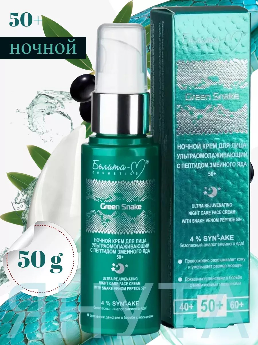| Комплектация | Ночной крем для лица ультраомолаживающий с пептидом змеиного яда 50+ 50 г -1 шт |