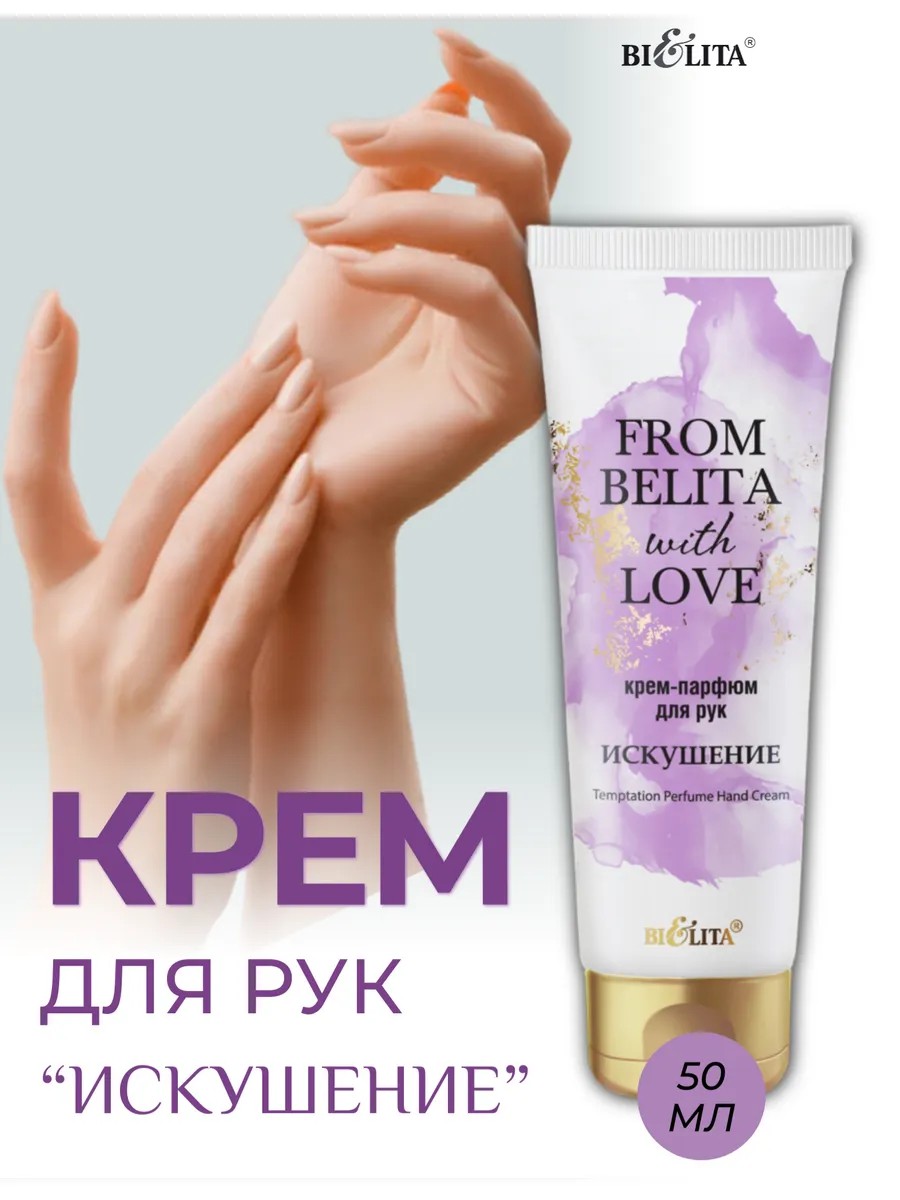 Подарите своим рукам заботу и роскошь с кремом для рук Искушение от Belita! Этот нежный крем создан для того, чтобы смягчать, увлажнять и защищать вашу кожу в любое время года.