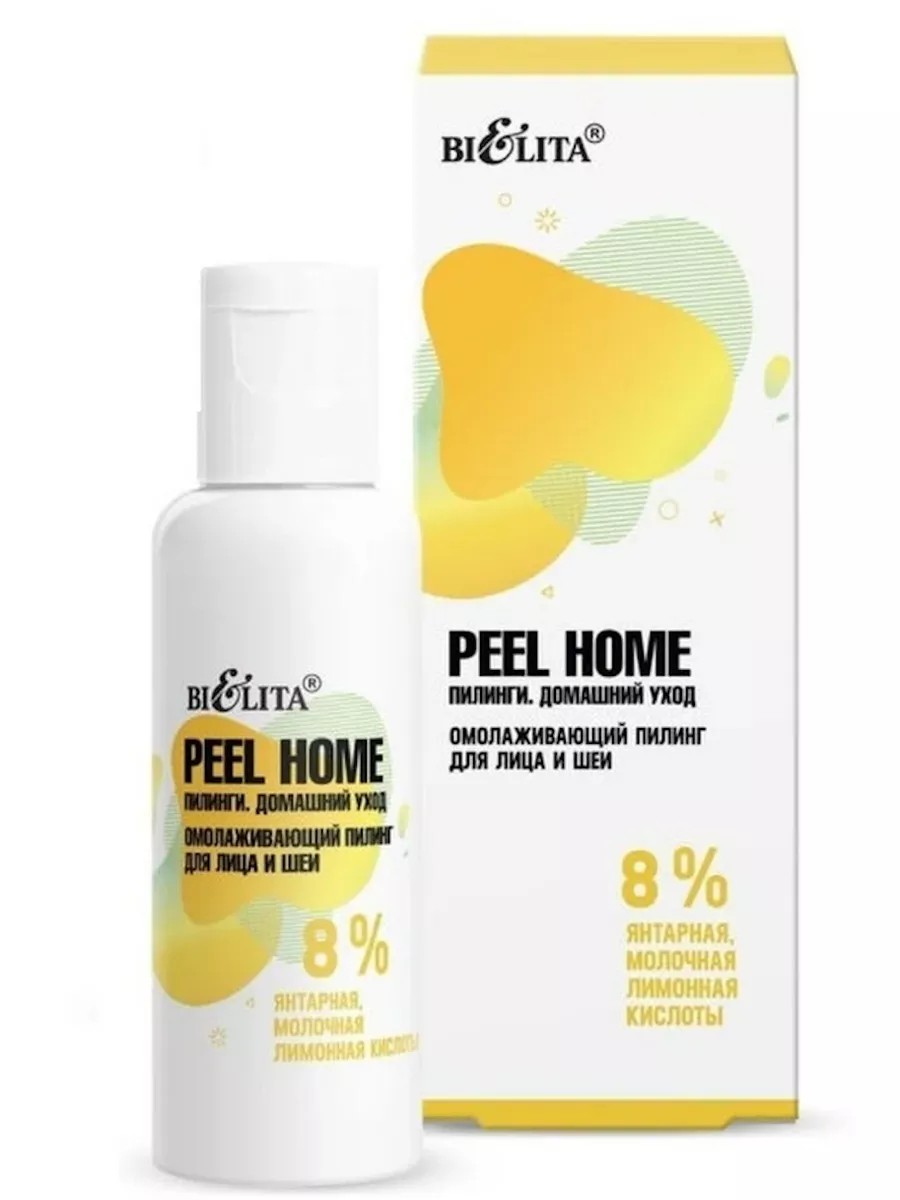 Bielita Пилинг для лица и шеи Peel Home омолаживающий 50 мл. Эффективный комплекс янтарной, молочной и лимонной кислот, входящий в состав пилинга, обновляет клетки кожи, стимулирует синтез коллагена, эластина и гиалуроновой кислоты, активизирует обменные процессы, благодаря чему значительно уменьшаются признаки старения кожи, сокращается глубина морщин, повышается тургор, эластичность и увлажненность кожи, улучшается цвет лица и подтягивается овал. Применение: нанесите на кожу лица, избегая области вокруг глаз и губ. Оставьте на 5-10 мин., смойте водой. Использовать не чаще 1 раза в 7-10 дней. Внимание! При попадании в глаза и на слизистые оболочки, при покраснении кожи и/или ощущении сильного жжения немедленно промыть большим количеством воды. Не наносить на поврежденную, раздраженную кожу.