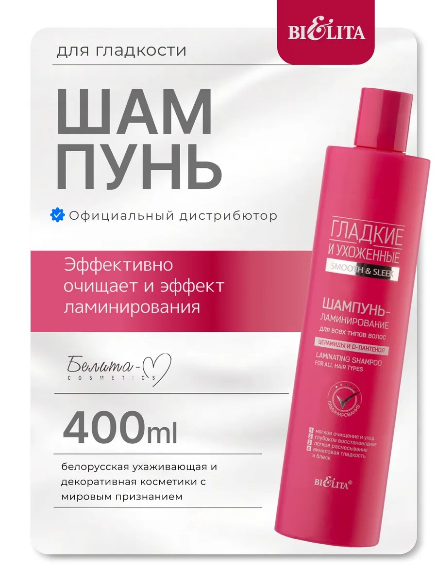Шампунь-ламинирование мягко очищает, увлажняет и питает волосы, предотвращая их ломкость и сечение. Технология интенсивного восстановления мгновенно преобразует поврежденные, ослабленные и ломкие волосы в чувственно-гладкие и блестящие. Формула, усиленная активными компонентами -Церамиды глубоко проникают в поврежденные участки волоса, заполняя микротрещины и восстанавливая кутикулярный слой по всей длине. В результате волосы вновь обретают силу и прочность, возвращается гладкость и блеск. -Д-пантенол утолщает волосы, предотвращает их ломкость и повреждение, обеспечивает длительное увлажнение и питание.
