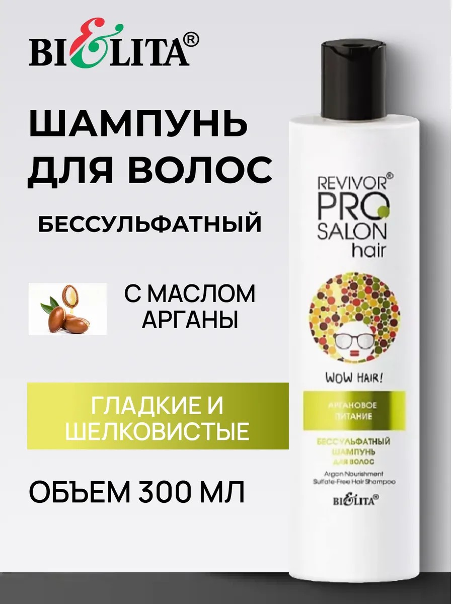 Sulfate-free shampoo "Argan nutrition" from Revivor PRO Salon Hair is a professional hair care product designed to gently cleanse and nourish the hair and scalp.