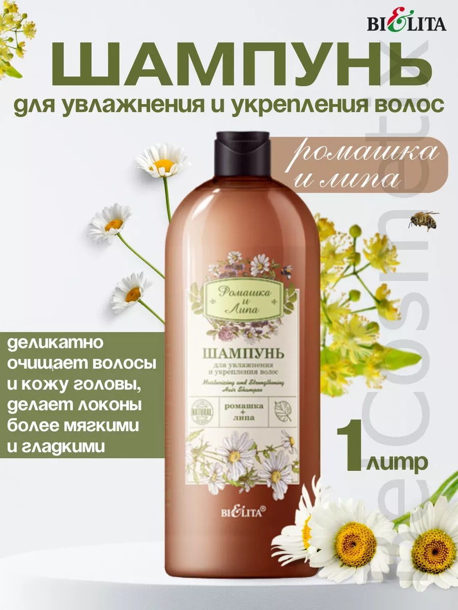 | Комплектация | Шампунь для увлaжнения и укрепления волос Ромашка и Липа 1 л 1т. |