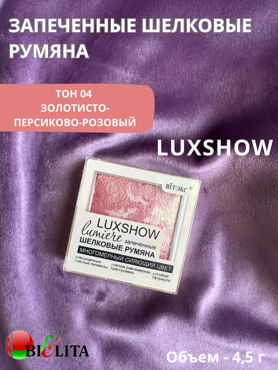 КомплектацияСияющие запеченные шелковые румяна LUXSHOW тон 04 - 1шт
