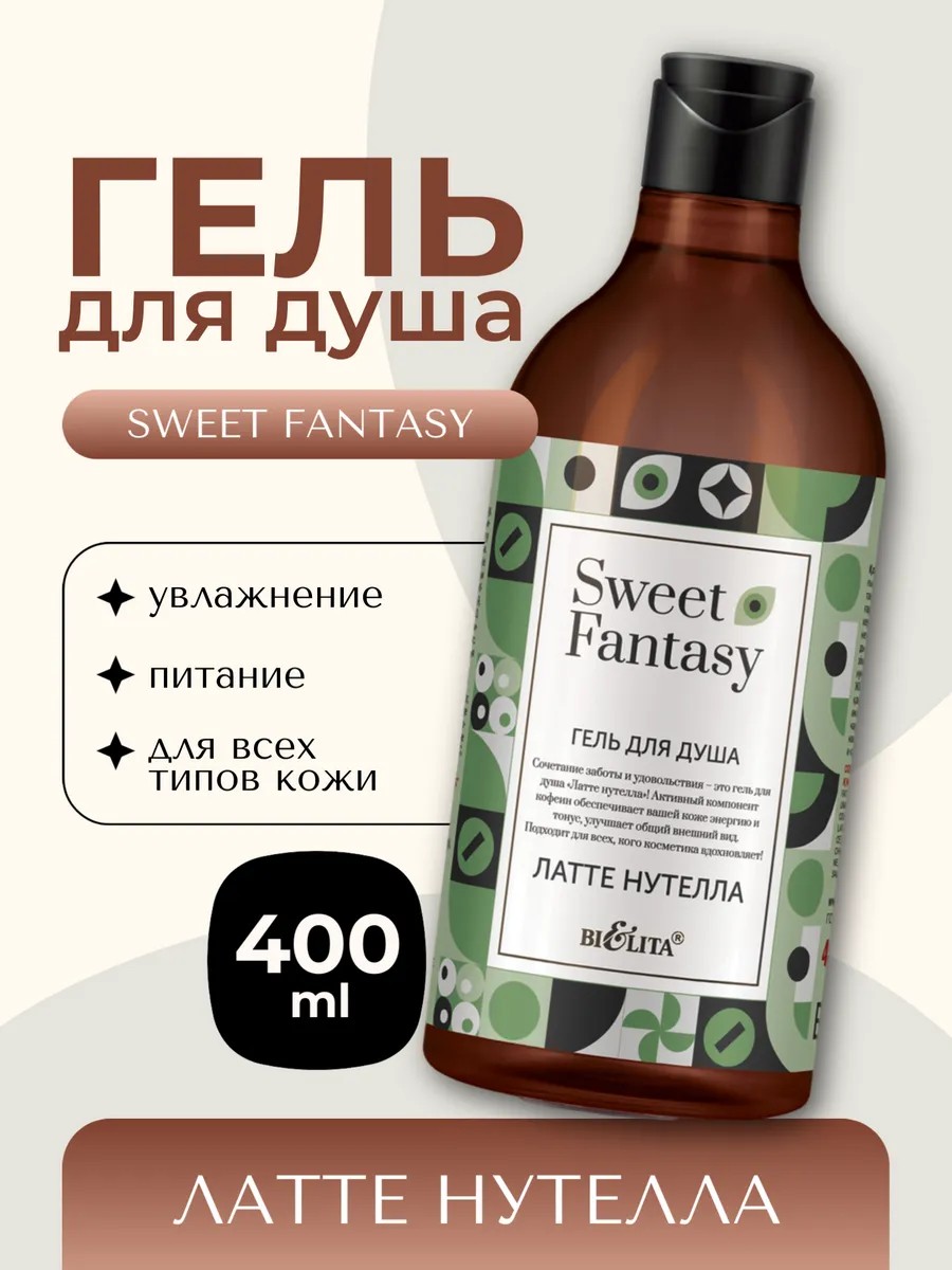 Latte Nutella SWEET FANTASY shower gel from the Belarusian brand BIELITA will give you a true feast for body and soul. This shower gel with the Nutella latte aroma will transform every shower into a true ritual of pleasure. Its delicate, enveloping texture forms a rich foam that gently cleanses the skin, leaving it moisturized and silky. The gel formula is enriched with natural ingredients that gently care for the skin, leaving it soft and supple. Latte Nutella SWEET FANTASY is the ideal bathing product for all skin types, including sensitive skin. Thanks to its moisturizing and nourishing properties, BIELITA shower gel is suitable for daily use. The Nutella latte aroma will give you a boost of energy and good mood for the whole day. Pamper yourself and your skin with this delightful shower gel!