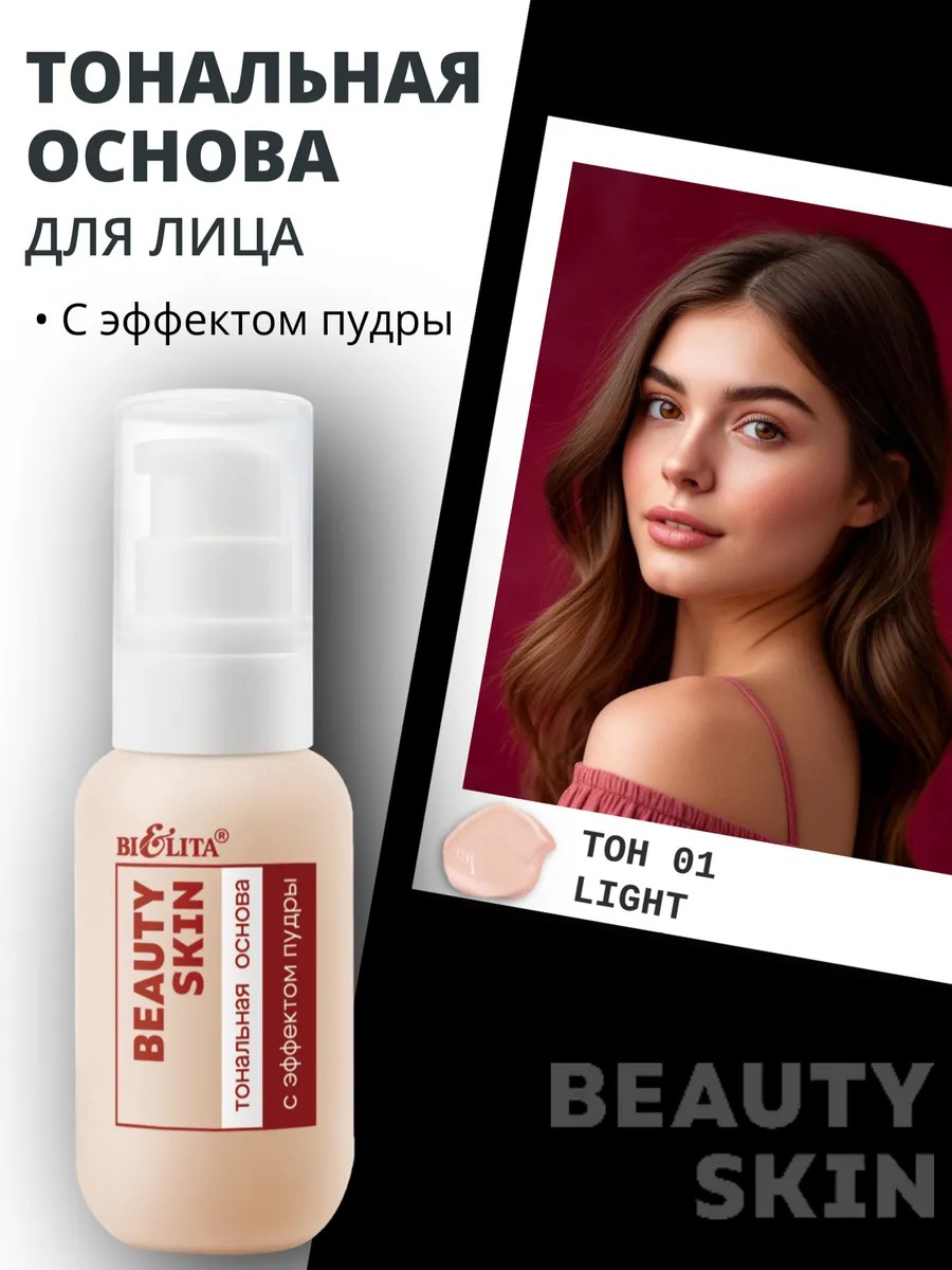 Introducing the BIELITA "Beauty Skin" powder-effect foundation in shade 01 Light—your secret to flawless makeup! This lightweight foundation is designed for all skin types, including combination and normal. Like a silky veil, it evens out skin tone, conceals pores, and imparts a velvety glow. Thanks to its innovative formula with PORE REDUCTYL, the cream not only evens out skin tone but also helps visually reduce the appearance of pores, leaving your skin flawless. The formula is enriched with vitamin C, which not only cares for the skin but also gives it a healthy glow. The powder-effect effect of BIELITA "Beauty Skin" cream ensures a matte finish all day long, while allowing skin to breathe and feel comfortable. The cream's light texture spreads easily without clogging pores, creating a natural, even tone. With BIELITA "Beauty Skin" foundation, you can create the perfect makeup that will highlight your natural beauty.