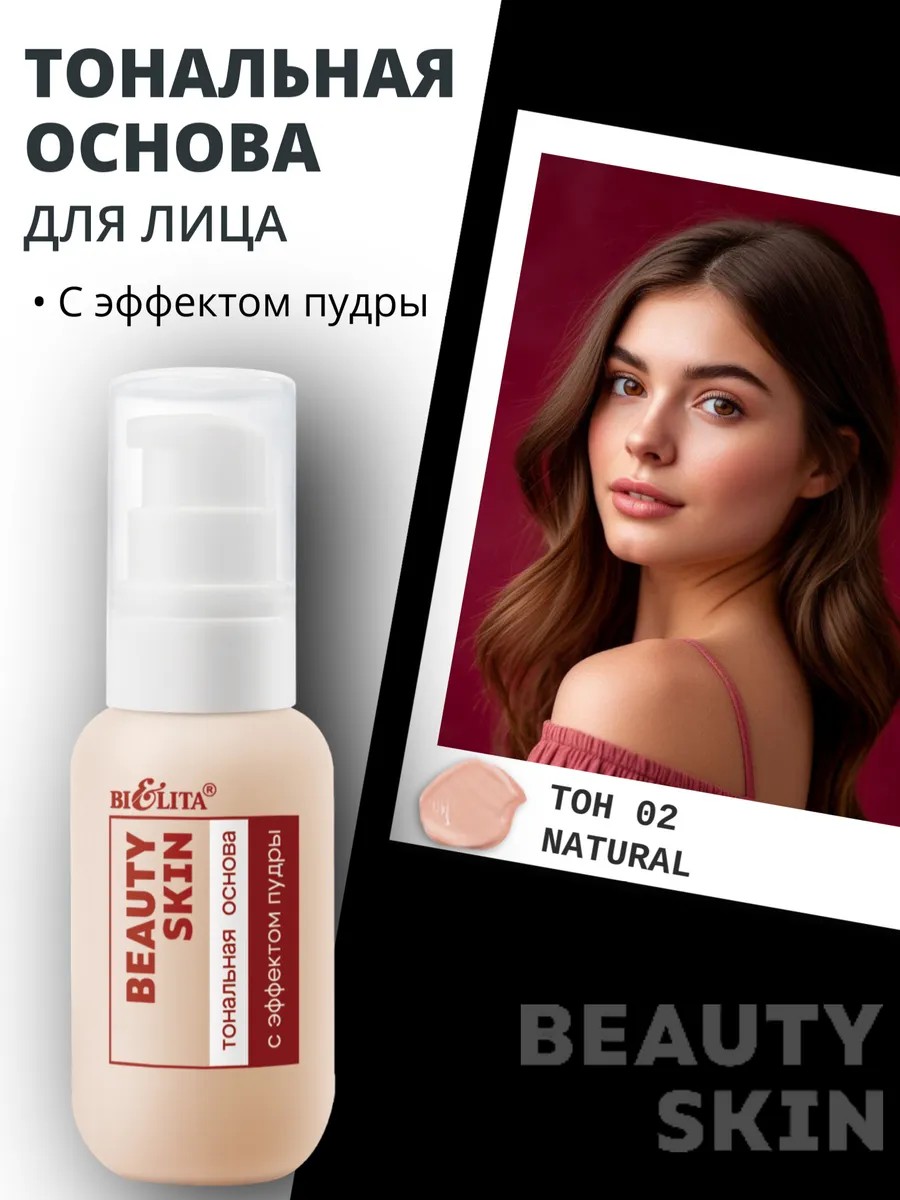 BIELITA Powder Effect Foundation in shade 02 Natural is the perfect solution for creating a flawless makeup look that will highlight the natural beauty of your skin. Its lightweight texture spreads evenly, providing an even tone and velvety coverage. The powder effect mattifies skin, making pores less visible. BIELITA foundation won't clog pores, making it suitable for all skin types, including combination and normal. The formula is enriched with vitamin C, known for its antioxidant properties and ability to even out skin tone. Thanks to PORE REDUCTYL, an ingredient that helps reduce the appearance of pores, your skin will look smooth and radiant. BIELITA foundation is your gateway to flawless makeup and beautiful skin. Its lightweight texture ensures comfortable wear all day long, and the matte finish leaves skin radiant and fresh. BIELITA foundation is Beauty Skin in every bottle.