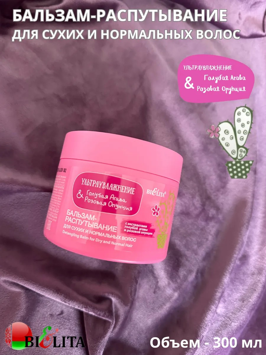 Бальзам-распутывание для сухих и нормальных волос Ультраувлажнение. Голубая агава & розовая опунция от белорусского бренда косметики Белита. Эффективно ухаживает за сухими и нормальными волосами. Каскад кондиционеров проникает в структуру волос, запечатывает кутикулу, делает волосы послушными, плотными и сияющими, обеспечивает легкое расчесывание. Бетаин в составе бальзама успокаивает кожу головы и удерживает влагу.