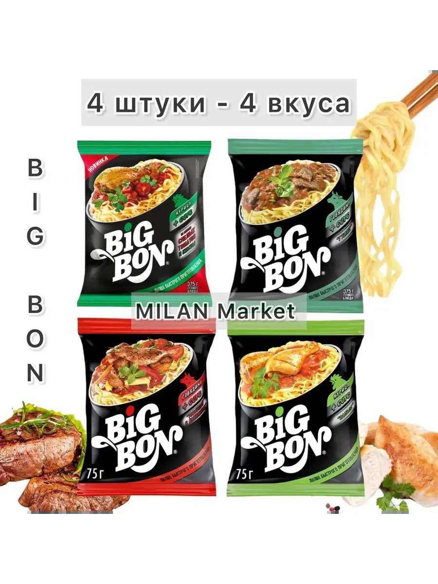 BIG BON Лапша 4 вкуса по 75 г. быстрого приготовления