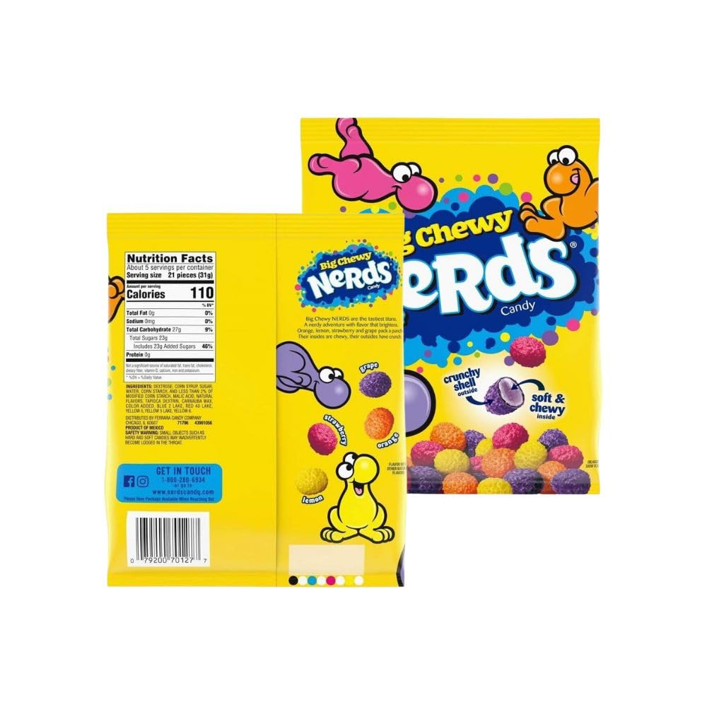 Experience the joy of sweet, tangy, and chewy all in one bite with Big Chewy NRD Candy! This delightful treat features a crunchy, colorful candy shell that bursts open to reveal a soft, chewy center. Each piece is packed with bold, fruity flavors, creating an irresistible taste and texture combination that candy lovers of all ages can't resist. This convenient 170g pack is perfect for enjoying at home, on the go, or sharing with friends and family. Whether you're looking for a quick snack to satisfy your sweet tooth or a fun addition to your parties, Big Chewy NRD deliver an explosion of flavor in every bite. With their vibrant colors and tangy sweetness, they're a treat that stands out at any gathering. Bring Big Chewy NRD to your next movie night, add them to a candy bowl, or use them to top your favorite desserts for a fun, colorful twist. Their versatile size and mix of flavors make them ideal for gift bags, party favors, or just keeping in your snack stash for whenever the craving strikes. A candy with a unique texture! The crunchy outer shell and chewy interior create a satisfying bite every time. Whether you're a longtime fan of it or discovering them for the first time, Big Chewy NRD Candy takes your love for sweets to the next level. Great for both kids and adults, this 170g pack offers enough candy to share or not! It's the ultimate treat for birthdays, holidays, or even as a pick-me-up snack during your day. Add some excitement to your candy game with Big Chewy NRD and experience why it's a favorite for so many. If you're looking for a snack that's bold, fruity, and fun, Big Chewy NRD Candy, 170g, is your go-to option. Grab your pack today and indulge in the sweet, tangy adventure that only Big Chewy NRD can deliver!VERSATILE TREAT FOR ANY OCCASION. Use Big Chewy NRD to top your desserts, add to gift baskets, or enjoy straight from the pack. Whether as a snack or a creative addition to recipes, these candies bring delicious fun to every moment. PERFECT FOR SHARING PARTIES. Big Chewy NRD are great for sharing at gatherings, parties, or movie nights. The bright colors and tangy-sweet taste make them a hit with kids and adults. It adds burst of fun to any occasion. A RAINBOW OF FLAVORS. Dive into a mix of bold and vibrant fruity flavors packed into every candy. With a variety of tastes in one bag, Big Chewy NRD deliver a playful, multi-flavored experience candy lovers of all ages will enjoy. CONVENIENT 170G PACK SIZE. This 170g pack is ideal for satisfying your sweet tooth or sharing with friends and family. Ideal for snacking at home, on the go, or as a delightful treat to brighten up your day anytime. SWEET TANGY CANDY WITH A CRUNCH. Enjoy Big Chewy NRD with a crunchy outer shell and a soft, chewy center. Each piece offers the perfect balance of sweet and tangy flavors, creating a fun and flavorful candy experience in every bite.