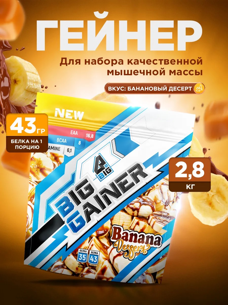 BIG GAINER это высокобелковый многокомпонентный гейнер со смесью протеина разных видов. Он содержит все необходимые вещества для быстрого набора мышечной массы. В состав входит казеиновый, яичный и сывороточный белки, которые обеспечивают постепенное высвобождение незаменимых аминокислот bcaa, что способствует росту и восстановлению мышц. Белково-углеводный коктейль на основе сложных углеводов невероятно питательный, прекрасно утоляет голод и подходит в качестве полноценного перекуса. Российское производство из высококачественного натурального сырья без глютена и сахара гарантирует высочайшее усвоение спортпита с максимальной пользой для организма. Белок гейнера и сочетание быстрых и медленных углеводов, один из которых палатиноза, плавно и равномерно высвобождают энергию для тренировок и наиболее оптимальны для наращивания массы. \n1. Приготовленный протеиновый (protein) углеводный напиток рекомендуется мужчинам и женщинам для поднятия общей калорийности рациона, в особенности при дефиците веса. \n2. Наш белковый генер станет идеальным выбором для спортсменов и людей, ведущих активный образ жизни или испытывающих высокие физические нагрузки. \n3. Эффективное и сбалансированное спортивное питание, созданное для тех, кто стремится к серьезному результату и заботится о своём теле! \nДанный спортпит также можете найти в категории профессиональное спортивное питание и косметика бренда BIGSNT, в ассортименте 1,5 кг и 3кг.