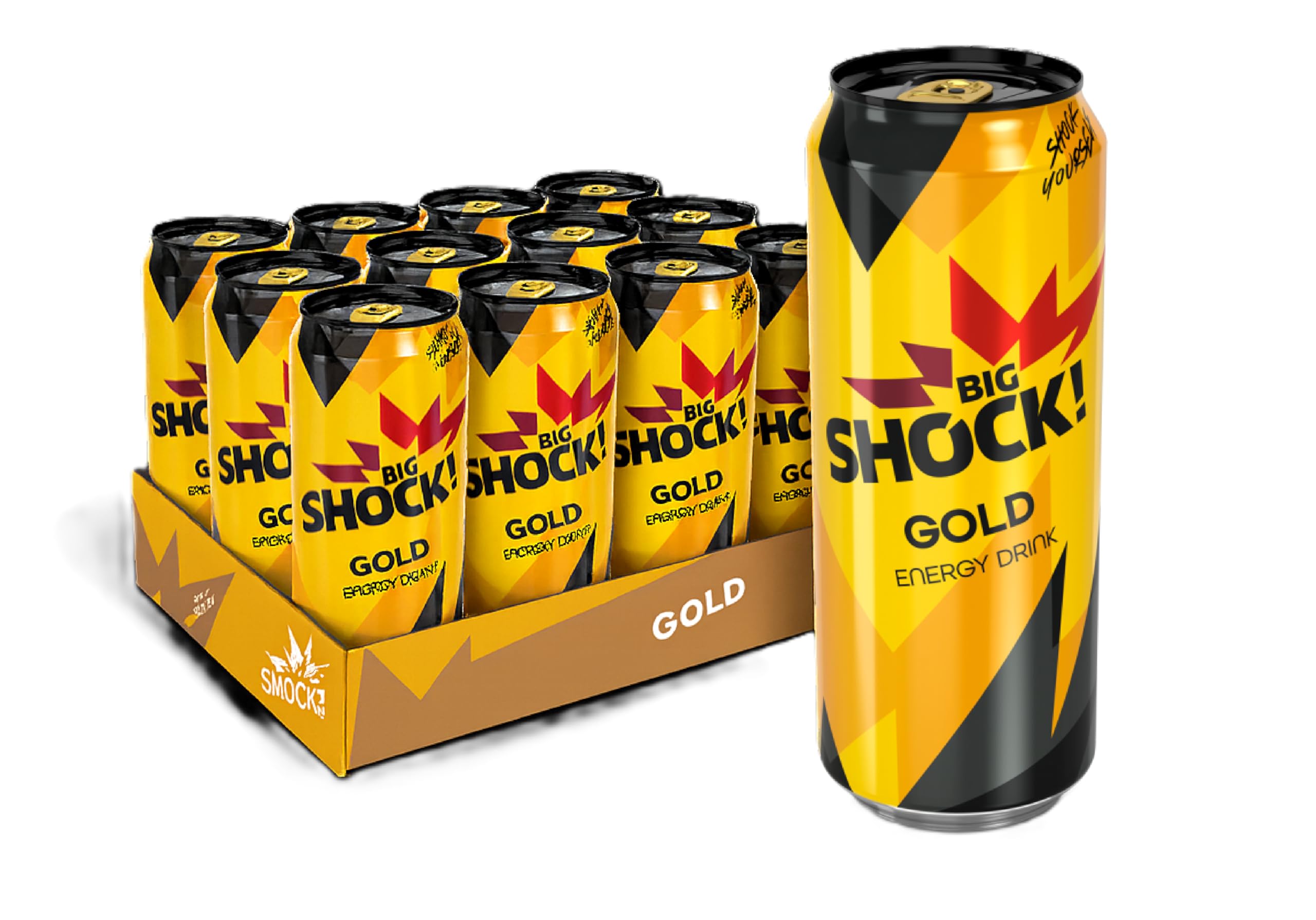Big Shock! Gold - 12 x 500 ml cans Bring your energy to life. Big Shock! Gold is the sparkling classic in bright yellow – a sparkling energy source that has been making the hearts of energy drink fans beat faster since 2006. With its unmistakable taste and a balanced composition of caffeine, taurine and vitamins, gold will get you going straight away. Taste and character: Carbonated energy drink with typical fruity "Tutti-Frutti" note – fresh, lively and a bit wonderfully sparkling. A drink that is full, without overdoing it. Active ingredients and nutritional values: Caffeine: approx. 32 mg 100 ml ? for 500 ml approximately 160 mg per can. :contentReference[oaicite:0]{index 0} taurine and essential vitamins of the B group (B2, B6, niacin, pantothenic acid, folic acid) and vitamin C. :contentReference[oaicite:1]{index 1} Calories nutrients per 100 ml: 51 kcal, carbohydrates 12.5 g, of which sugar 12.5 g, fat and proteins almost 0. :contentReference[oaicite:2]{index 2} Dimensions and packaging: each box contains 500 ml. Here in a practical pack of 12 - ideal for at home, on the road or whenever energy is needed. Cans are saturated (with carbon dioxide). :contentReference[oaicite:3]{index 3} Application time: perfect when you need an energy boost - when studying, exercising, long car rides or just on warm afternoons. Serve chilled for optimal enjoyment. Note: contains sweeteners and sufficient caffeine - not suitable for children, pregnant women or especially caffeine-sensitive people. With Big Shock. Gold doesn't just give you energy, you get an experience. Yellow, sparkling, full of flavor. This way you get off to a stimulating start. INGREDIENTS Drinking water, sugar, acid: citric acid carbonic acid, taurine (400 mg 100 ml), aroma, vitamins (vitamin C, niacin, pantothenic acid, vitamin B6, riboflavin (vitamin B2), folic acid), caffeine (32 mg 100 ml), preservatives: potassium sorbate, sodium benzoate, antioxidant. medium: L-A score. binic acid coloring: ammonia sulphite caramel. SAFETY WARNING Do not mix with alcohol. Serve chilled. High caffeine content: not suitable for children and pregnant or lactating women (32 mg 100 ml). Not suitable for adolescents, people with caffeine sensitivity and people with cardiovascular diseases. Maximum recommended daily dose: 1 can (500 ml). See moreBIG SHOCK! Gold Energy Drink 12 x 500 ml blik Big Shock! Goud - 12 x 500 ml blikjes Breng je energie tot leven. Big Shock! Goud is de sprankelende klassieker in helder geel – een sprankelende energiebron die sinds 2006 de harten van energiedrankfans sneller doet kloppen. Met zijn onmiskenbare smaak en een uitgebalanceerde compositie van cafeïne, taurine en vitaminen brengt goud je direct op tochten. Smaak en karakter: Gecarboneerde energiedrank met typisch fruitige "Tutti-Frutti"-noot – fris, levendig en een beetje heerlijk sprankelend. Een drankje dat vol is, zonder te overdrijven. Werkzame stoffen en voedingswaarden: Cafeïne: ca. 32 mg 100 ml ? bij 500 ml ongeveer 160 mg per blikje. :contentReference[oaicite:0]{index 0} taurine en essentiële vitaminen van de B-groep (B2, B6, niacine, pantotheenzuur, foliumzuur) en vitamine C. :contentReference[oaicite:1]{index 1} Calorieën voedingsstoffen per 100 ml: 51 kcal, koolhydraten 12,5 g, waarvan suiker 12,5 g, vet en eiwitten zo goed als 0. :contentReference[oaicite:2]{index 2} Afmetingen en verpakking: elke doos bevat 500 ml. Hier in een praktisch pakket van 12 stuks – ideaal voor thuis, onderweg of wanneer energie nodig is. Blikken zijn verzadigd (met koolzuur). :contentReference[oaicite:3]{index 3} Toepassingstijd: perfect als je een energieboost nodig hebt – bij het leren, sporten, lange autoritten of gewoon op warme middagen. Koel serveren voor optimaal genot. Opmerking: bevat zoetstoffen en voldoende cafeïne - niet geschikt voor kinderen, zwangere vrouwen of vooral cafeïnegevoelige personen. Met Big Shock. Goud krijg je niet alleen energie, je krijgt een ervaring. Geel, sprankelend, vol van smaak. Zo start je prikkelend door. INGREDIËNTEN Drinkwater, suiker, zuur: citroenzuur koolzuur, taurine (400 mg 100 ml), aroma, vitaminen (vitamine C, niacine, pantotheenzuur, vitamine B6, riboflavine (vitamine B2), foliumzuur), cafeïne (32 mg 100 ml), conserveringsmiddelen: kaliumsorbaat, natriumbenzoaat, antioxidatie. middel: L-Ascore. binzuur kleurstof: ammoniaksulfiet-karamel. VEILIGHEIDSWAARSCHUWING Niet mengen met alcohol. Serveer gekoeld. Hoog cafeïnegehalte: niet geschikt voor kinderen en zwangere of zogende vrouwen (32 mg 100 ml). Niet geschikt voor adolescenten, personen met cafeïnegevoeligheid en mensen met hart- en vaatziekten. Maximale aanbevolen dagelijkse dosis: 1 blik (500 ml). Meer bekijken