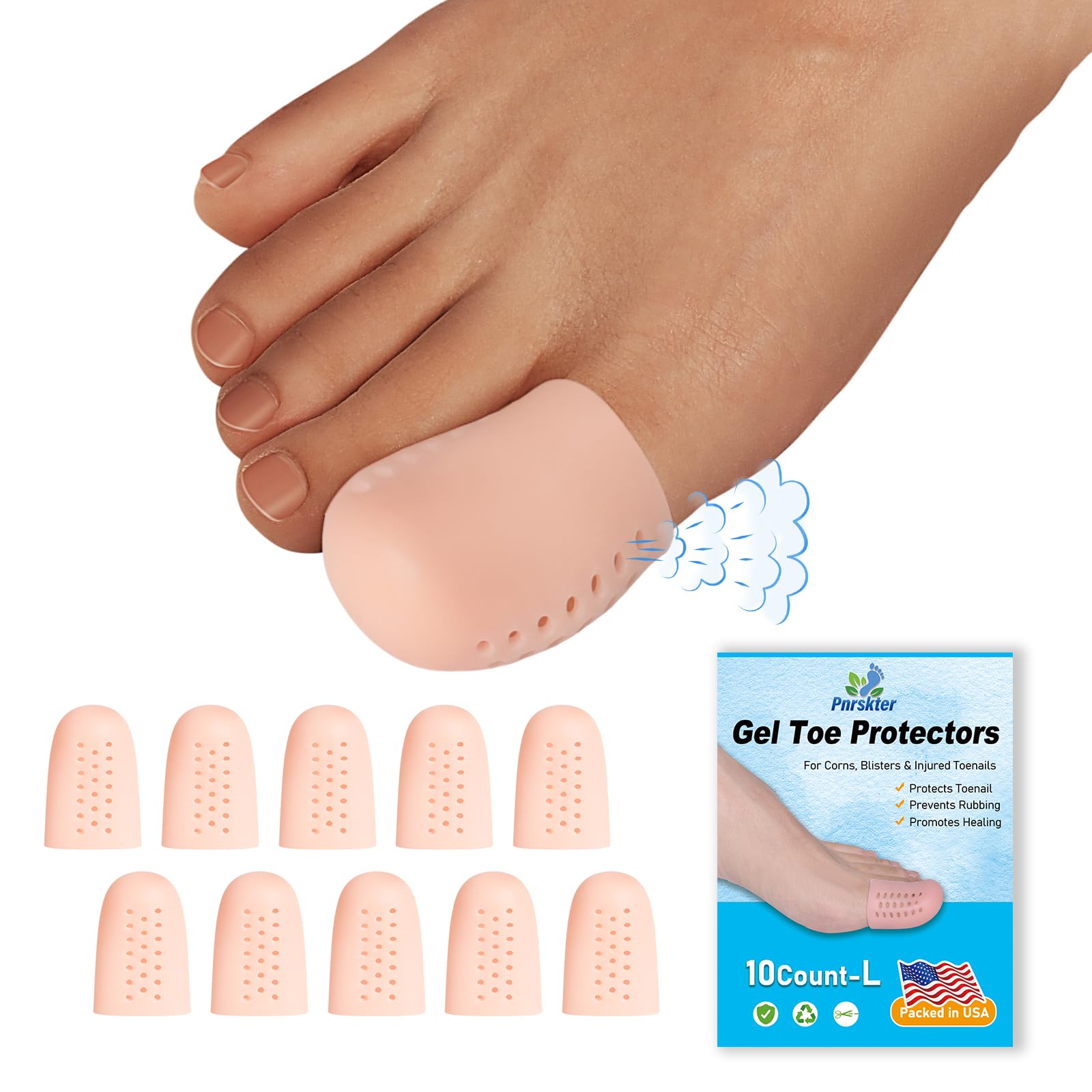 ???What you get?: 10PCS toe protectors for the big toes + our worry-free 18-month post-sale service and friendly customer service!. ???Breathable Design?: The big toe protectors feature holes design for enhanced breath-ability, let the toes to be more ventilated during daily activities. They are washable and reusable. ???Soft & Comfortable?: Made from aloe vera extract-infused gel materials, toe covers are soft and flexible. It feels like a second skin, and provides the best care for your toes. ???Effective Cushioning?: Toe caps provide a 360° perfect cushioning between your toe and shoe, protecting toes from friction. Providing all-day comfort. Our toe protectors stay right place, secure protection throughout the day. ???Relieve Toe Pain?: Our gel toe protector protects missing or ingrown nails, hammer toes, blister and other painful spots on the feet from rubbing.