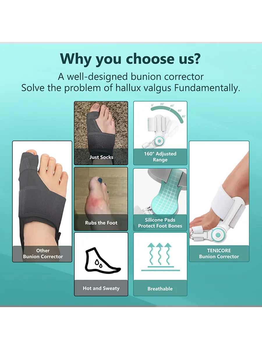 Unique prong design: The angle can be precisely adjusted according to the degree of eversion, and the toes can be re-adjusted to their natural position through 160 degree flexible rotation.