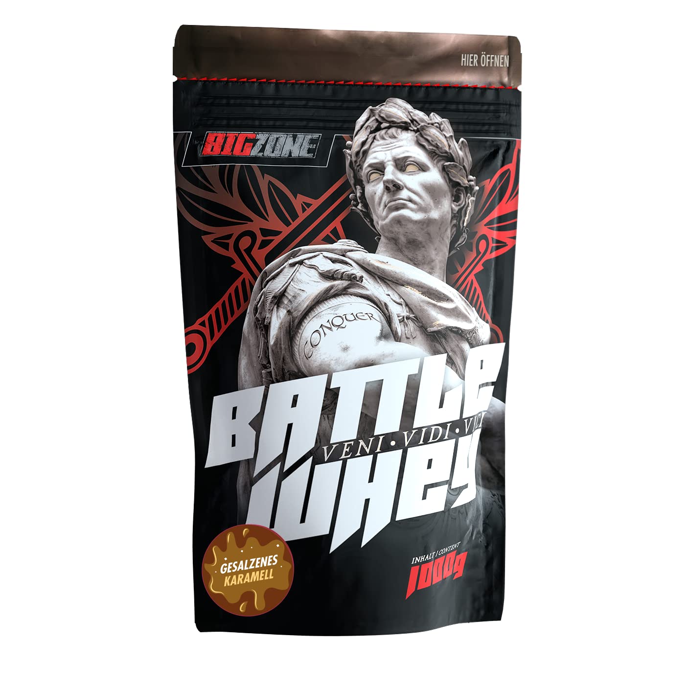 Big Zone Battle White Whey Protein Concentrate | Delicious Quality Made in Germany | 1000g 1kg Powder (Salted Caramel)
