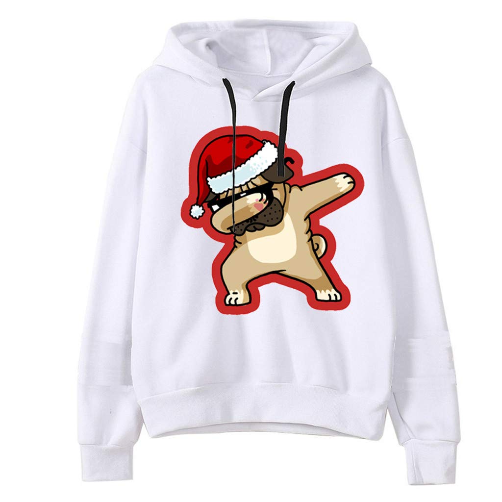 Bigfanshu Womans Tops Christmas Print Hooded Long Sleeves Sweatshirt Pullover Shirt