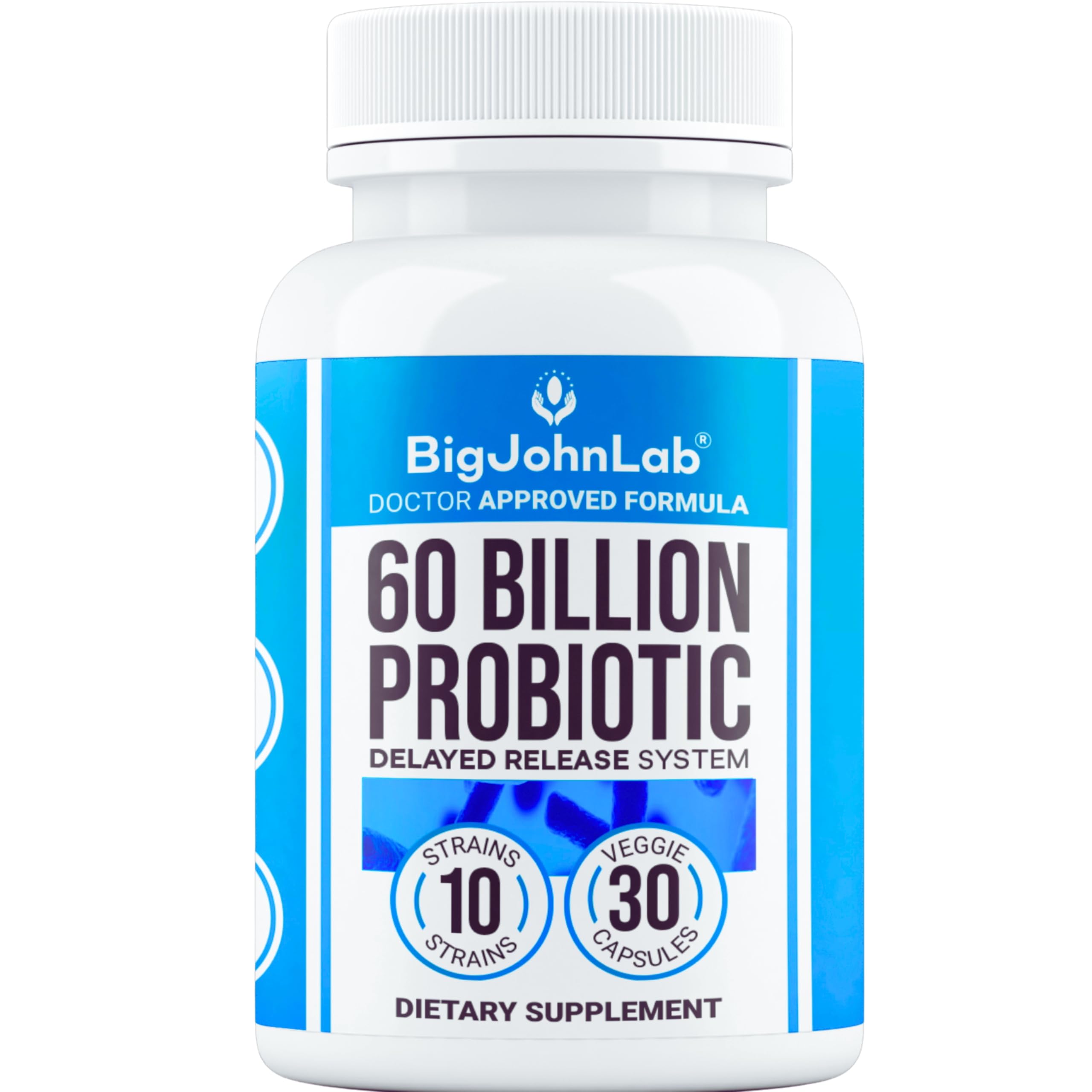 BIGJOHNLAB Probiotics 60 Billion CFU 10 Strains + Organic Prebiotics Immune, Digestive & Gut Health Supports Occasional Constipation, Diarrhea, Gas & Bloating for Women & Men 30ct Advanced Formula 30 Count (Pack