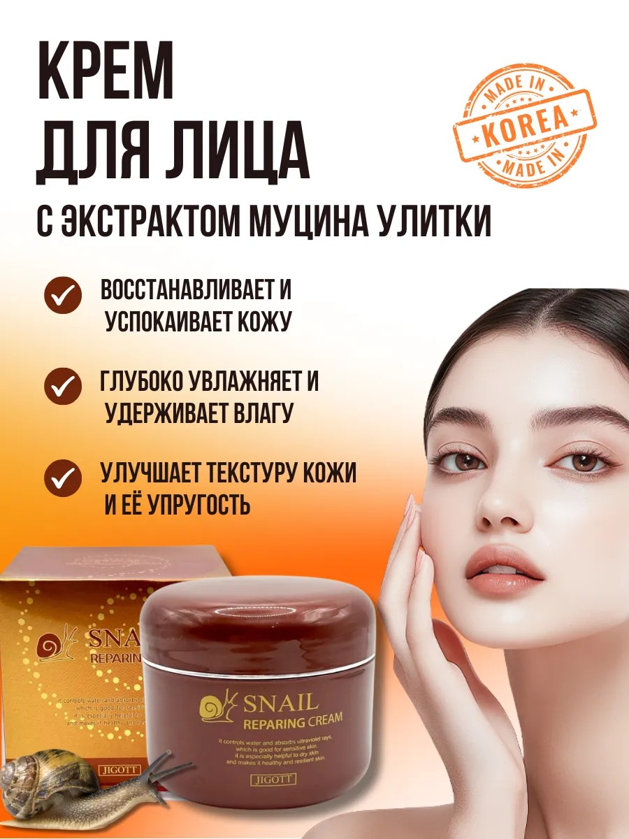 Многофункциональный крем JIGOTT Snail Repairing Cream с улиточным муцином – идеальное решение для вашей кожи!