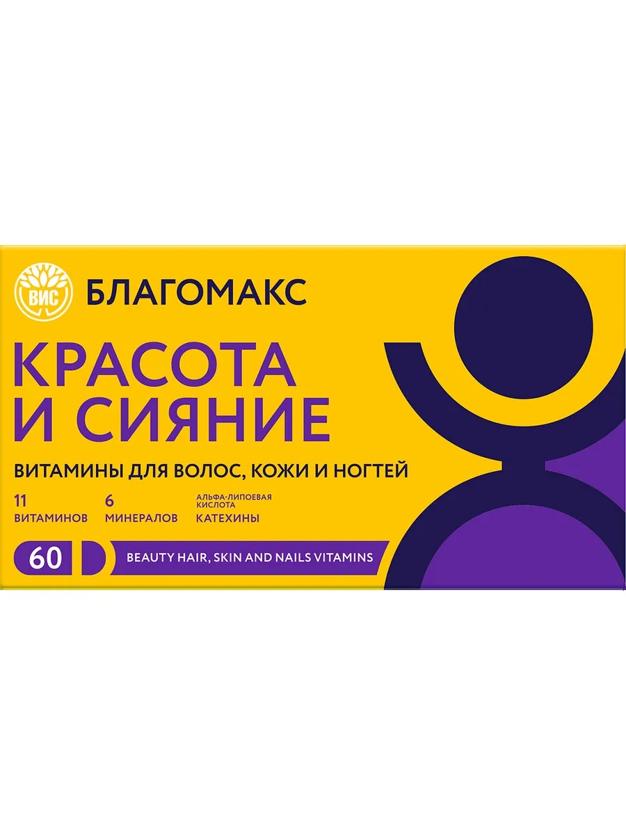 Благомакс Красота и Сияние Витамины для волос,кожи и ногтей/Blagomax Beauty Hair,Skin and Nails Vitamins капсулы массой 0,4 г 60 шт