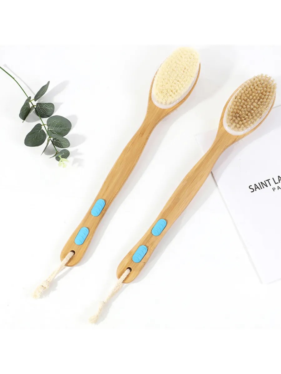 Long Handle Soft Bristles Shower Brush Dry Skin Exfoliating Double-sided Bath Back Massage Brush Skin Care Cleaning Tool