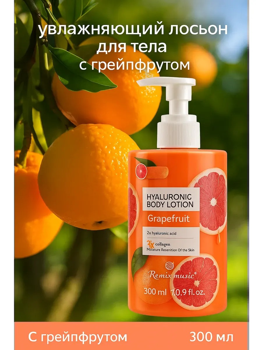 Лосьон для тела Remix Music Grapefruit — это идеальный уход для вашей кожи с бодрящим ароматом свежего грейпфрута. Благодаря формуле с двойной дозой гиалуроновой кислоты и тройным коллагеном, средство интенсивно увлажняет, смягчает и восстанавливает кожу уже с первого применения.