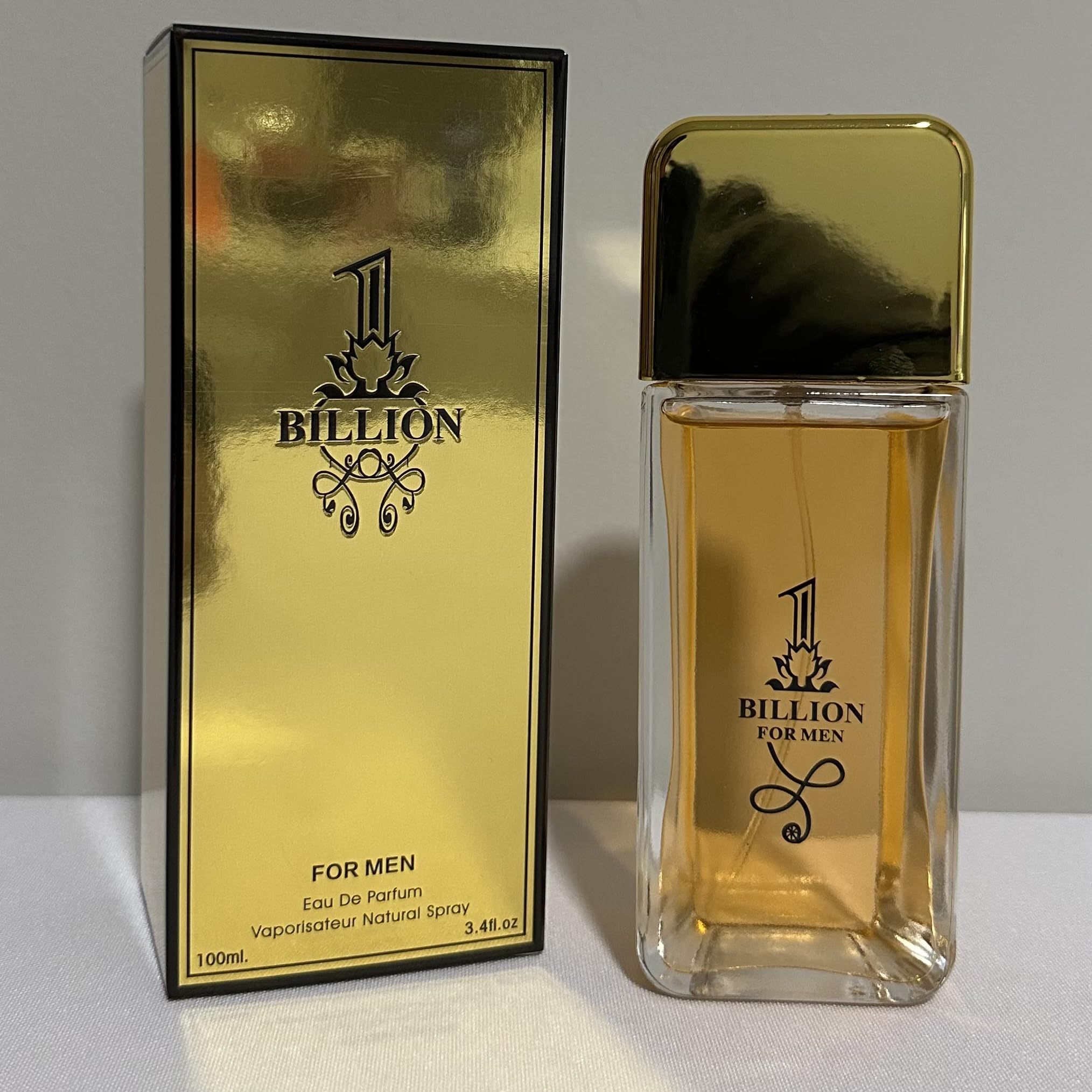 Introducing Billion For Men, an exquisite eau de parfum that embodies luxury and sophistication. This distinguished fragrance comes in a sleek 3.41 fl.oz (100ml) glass bottle adorned with elegant gold accents and the distinctive Billion logo. The natural spray vaporizer ensures perfect application every time. The premium packaging features a refined gold-tone box that reflects the opulent nature of the scent within. This sophisticated men's fragrance is designed for the modern gentleman who appreciates timeless elegance. The substantial 100ml size offers lasting value, while the contemporary design makes it a striking addition to any grooming collection. The convenient spray format makes it ideal for daily wear or special occasions. Mil. Smell
