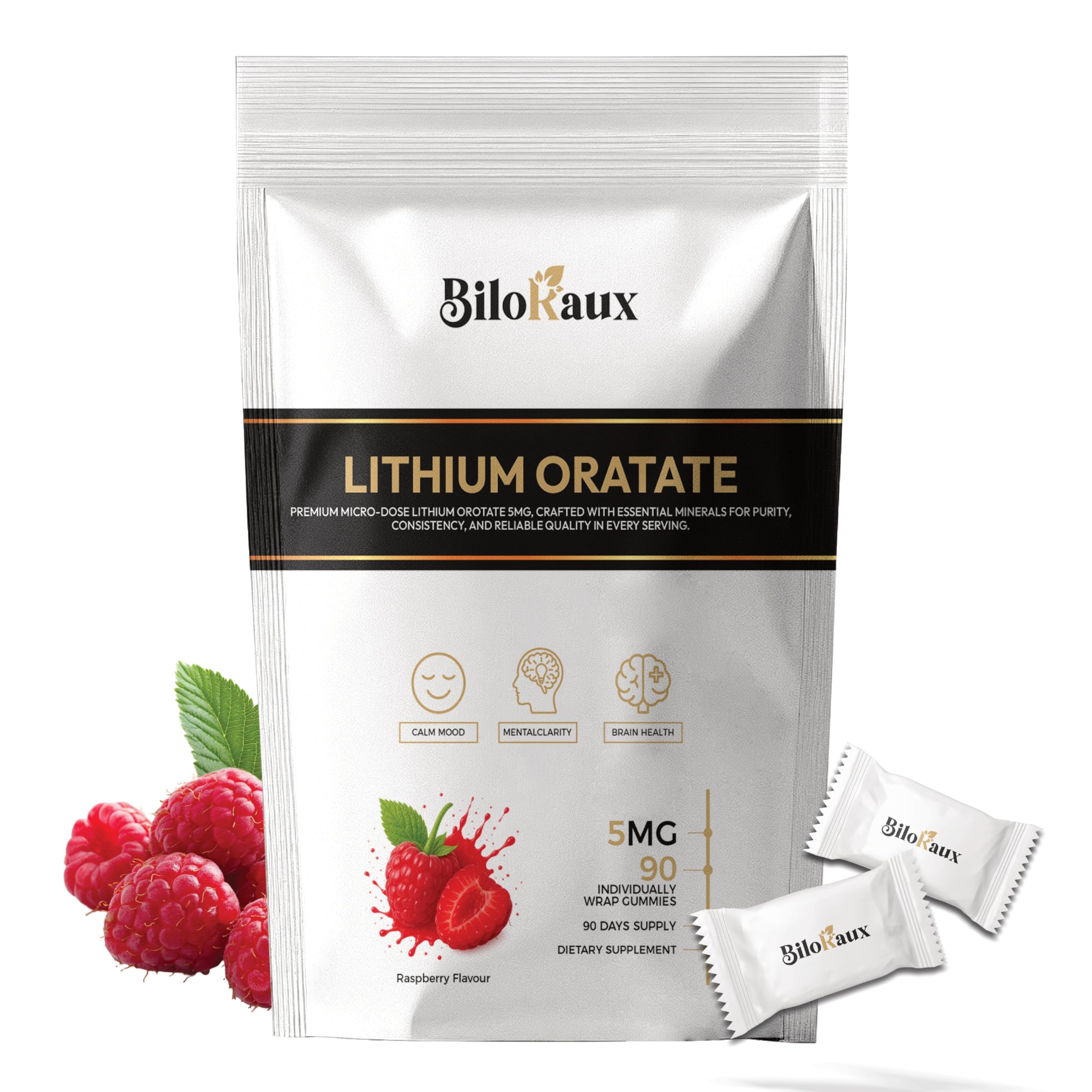 Experience gentle, daily balance with BiloRaux Lithium Orotate 5mg Gummies, a thoughtfully crafted lithium supplement designed to support focus, composure, and inner calm. Each serving provides a microdose of 5 mg lithium orotate in a smooth, natural raspberry flavor — the perfect way to enjoy the benefits of lithium orotate gummies without the bitterness of capsules or tablets. Made with pure lithium orotate, our clean, plant-based formula combines monk fruit, pectin, and natural fruit flavors for a delicious and convenient supplement experience. Whether you're exploring lithium orotate 5mg as part of your daily wellness routine or seeking a gentle lithium supplement organic alternative, BiloRaux offers a balanced approach that fits easily into modern lifestyles. Each batch of our lithium orotate third party tested gummies is verified for purity and consistency, ensuring that every piece meets high-quality standards. We believe in transparency and reliability, which is why our lithium orotate 5 mg and lithium 5 mg formulations are produced under strict quality control. These lithium gummies are vegan, non-GMO, gluten-free, and soy-free, offering a clean and conscious option for anyone seeking a simple way to maintain clarity and calm. With 90 delicious gummies in every bottle — a generous 60-day supply — Bilokaux delivers a consistent and enjoyable way to experience the benefits of lithium orotate now. Choose BiloRaux Lithium Orotate Gummies — a premium blend of orotate lithium and care, crafted for those who value focus, balance, and a pure, mindful approach to wellness.90 Gummies – 90 Days Supply Each bottle includes 90 individually wrapped lithium orotate 5mg gummies, giving you long-lasting support in a travel-friendly, easy-to-use format. Clean, Conscious Formula: Vegan, Non-GMO, gluten-free, and soy-free. Bilokaux lithium supplements organic formula is crafted with monk fruit and natural fruit flavor – no artificial colors or preservatives. Quality You Can Trust – Third-Party Tested: Made under strict quality standards, our lithium orotate third-party tested gummies ensure purity, consistency, and reliable quality in every batch. Natural Raspberry Flavor – Easy to Enjoy: Unlike traditional lithium capsules or tablets, our lithium orotate gummies offer a tasty, convenient way to include lithium supplements in your routine. Gentle Microdose Support – 5mg Lithium Orotate: Crafted with pure lithium orotate 5mg per serving, these gummies provide a balanced micro-dose option designed for daily wellness and mental focus.