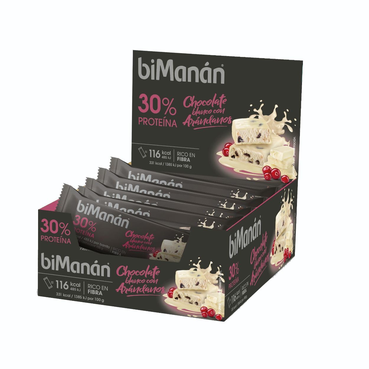 Delicious protein bars with a white chocolate topping and cranberry pieces. High in protein and fiber. 116 calories per bar. INGREDIENTS MILK proteins (emulsifier (SOY and sunflower lecithins), dietary fiber (chicory), white chocolate with sweeteners 29 cocoa (15 ) [sweeteners (maltitol, acesulfame K), cocoa butter, whole MILK powder, emulsifier (SOY lecithin), flavoring], white chocolate 34 cocoa or (8 ) [sugar, cocoa butter, whole MILK powder, whey (MILK), emulsifiers (SOY lecithin, polyglycerol polyricinoleate), flavoring], dried cranberry (8 ) [sugar, cranberries (49 ), sunflower oil], humectants (maltitol syrup, erythritol), isomaloto-estrol ligosaccharide powder (1), water, roasted ALMOND, flavorings, acidity regulator (citric acid). May contain sesame. Sulfites, cereals containing gluten, eggs, other tree nuts, cashews and their derivatives. (1) Source of glucosebiManán beFIT Barre protéine chocolat blanc aux canneberges pour tonifier votre masse musculaire - Présentoir 20 piècesDESCRIPTION DU PRODUIT DESCRIPTION DU PRODUIT Délicieuses barres protéinées avec garniture de chocolat blanc et de petits morceaux de canneberges. À haute teneur en protéines et riches en fibres. 116 calories par barre. INGRÉDIENTS Protéines de LAIT (émulsifiant (lécithines de SOJA et de tournesol), fibre alimentaire (chicorée), chocolat blanc avec édulcorants 29 cacao (15 ) [édulcorants (maltitol, acésulfame-K), beurre de cacao, LAIT entier en poudre, émulsifiant (lécithine de SOJA), arôme], chocolat blanc 34 cacao ou (8 ) [sucre, beurre de cacao, LAIT entier en poudre, lactosérum (LAIT), émulsifiants (lécithine de SOJA, polyricinoléate de polyglycérol), arôme], canneberge déshydratée (8 ) [sucre, canneberges (49 ), huile de tournesol], humectants (sirop de maltitol, érythritol), isomaloto-oestrol ligosaccharide poudre (1), eau, AMANDE grillée, arômes, correcteur d'acidité (acide citrique). Peut contenir du sésame, des sulfites, des céréales contenant du gluten, des œufs, d'autres fruits à la coque, la noix de cajou et leurs dérivés. (1) Source de glucose
