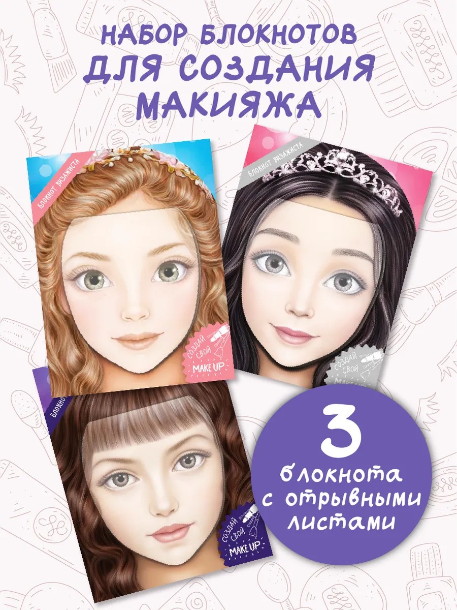 БимБиМон Раскраска для девочки Макияж Блокнот визажиста 3 штуки