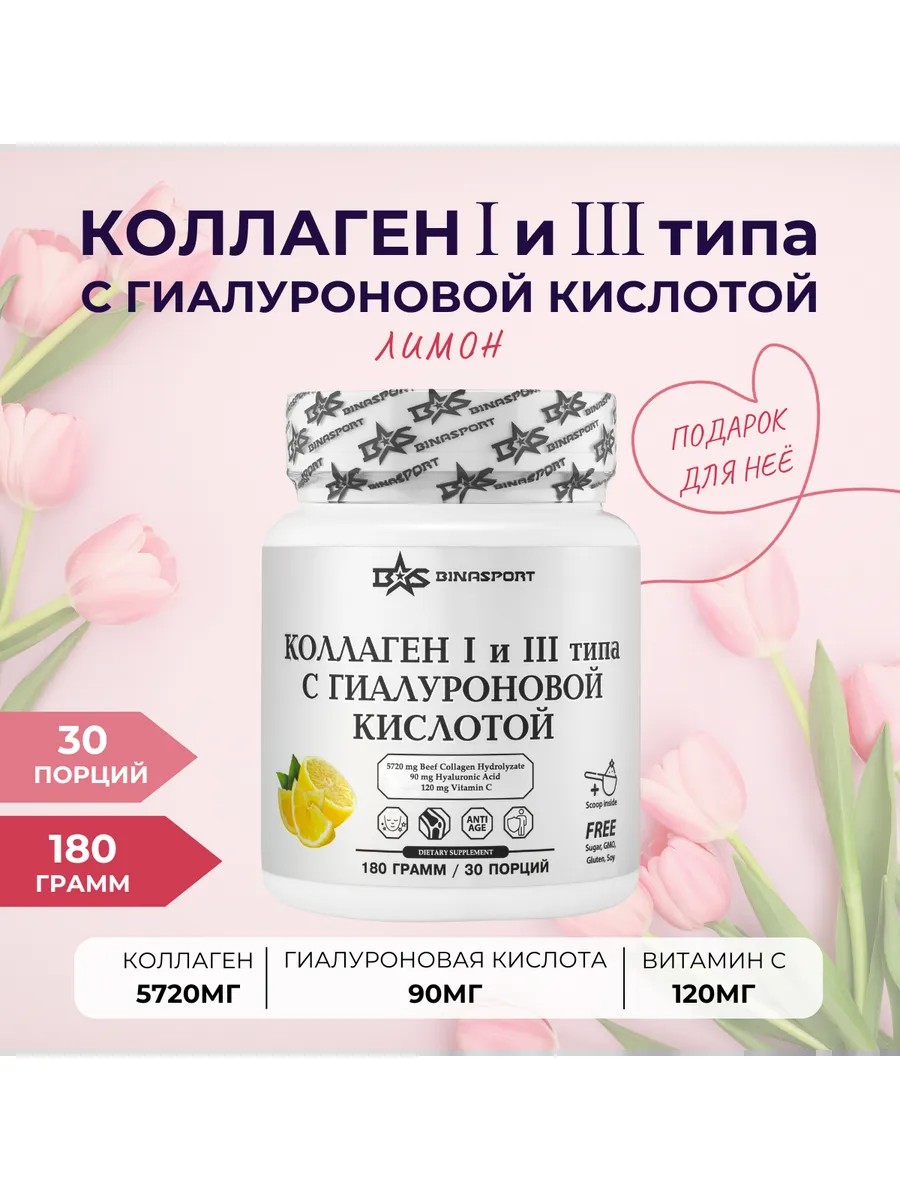 Гидролизованный коллаген 1 и 3 типа с гиалуроновой кислотой 180 г со вкусом лимон Binasport 4620149132378